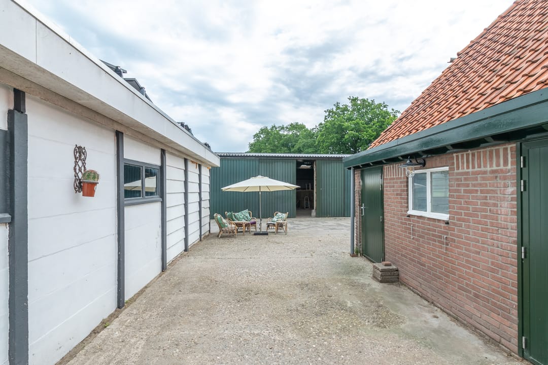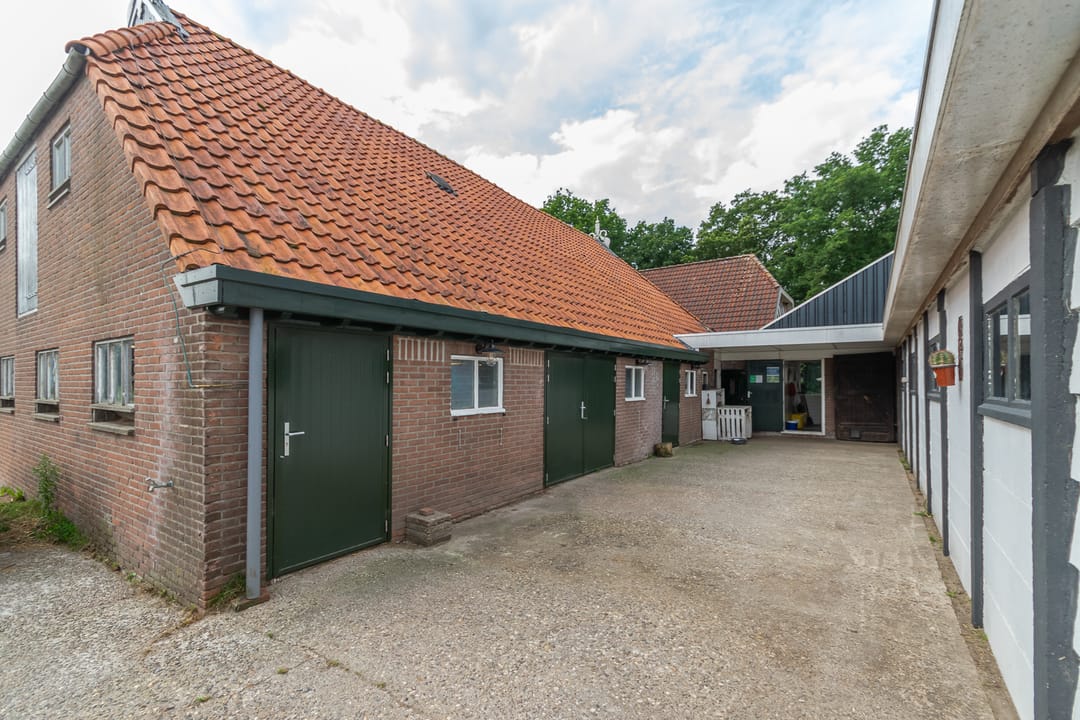 Bedrijfsgedeelte: Achter het woonhuis bevindt zich een bedrijfsgedeelte dat in gebruik is als opslag/berging en huisvesting van jonge geiten. Dit gedeelte is opgetrokken vanuit houten gebinten en met pannen gedekt.