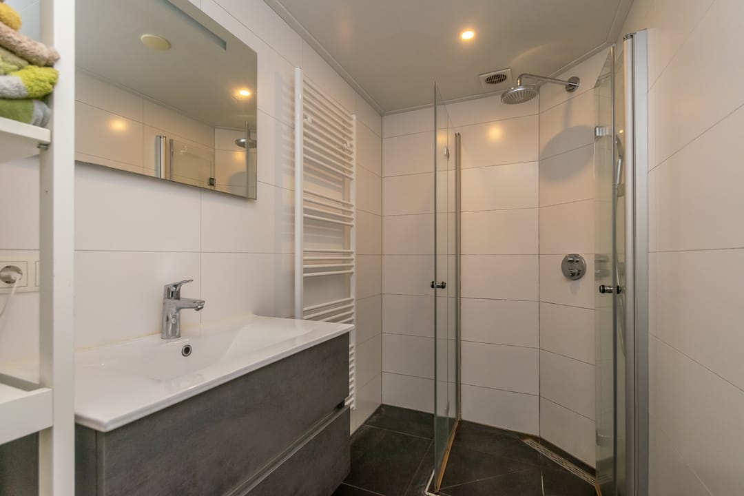 Omschrijving: De afgelopen jaren is het woonhuis grondig gemoderniseerd en voorzien van diverse comfortabele en duurzame voorzieningen. In 2020 zijn onder andere vloerverwarming en een nieuwe cv-ketel aangebracht. Datzelfde jaar is het gehele huis opgeknapt met nieuw schilderwerk, stijlvolle vloeren, een moderne keuken, luxe badkamer, gezellige gashaard, airconditioning in zowel de woonkamer als de slaapkamer, een nieuw toilet, vloerisolatie, dubbele beglazing en kunststof kozijnen in de slaapkamer beneden en de keuken. De cv-ketel heeft voldoende capaciteit voor het omzetten van het achterhuis naar woonruimte; de aansluitingen voor water, riool en vloerverwarming zijn al aangelegd.