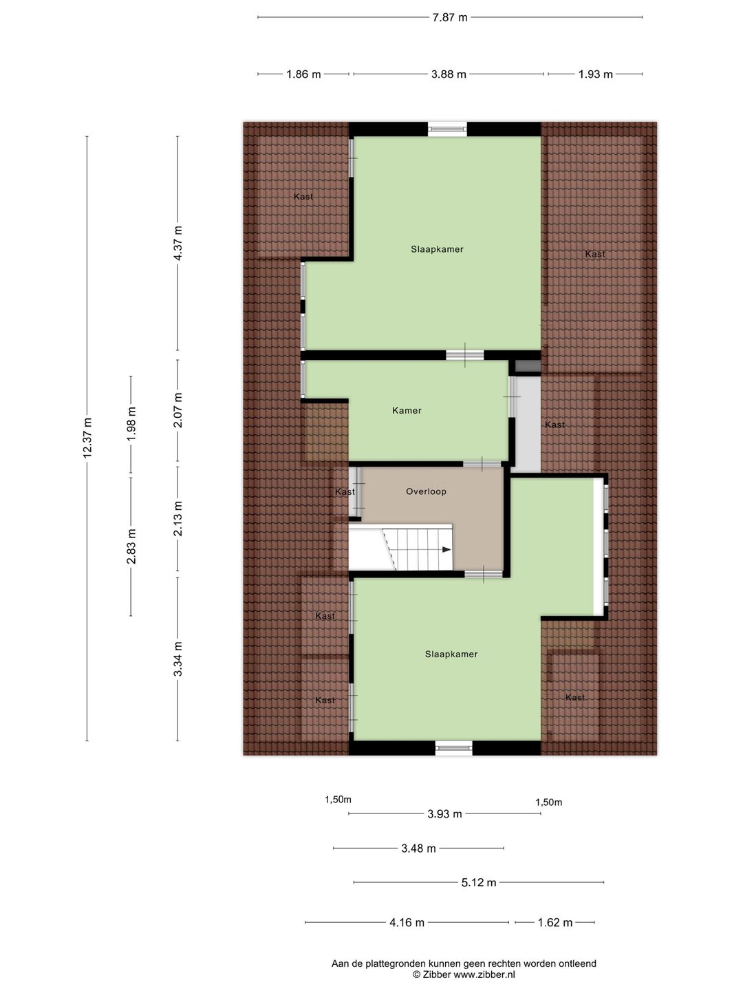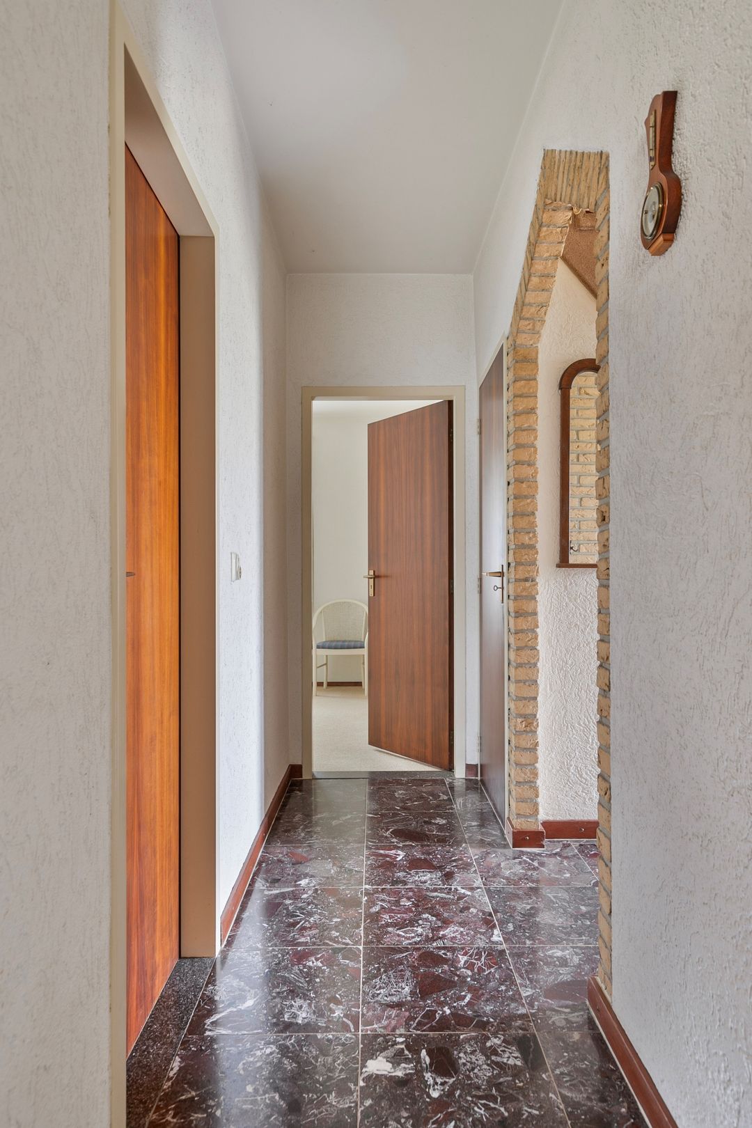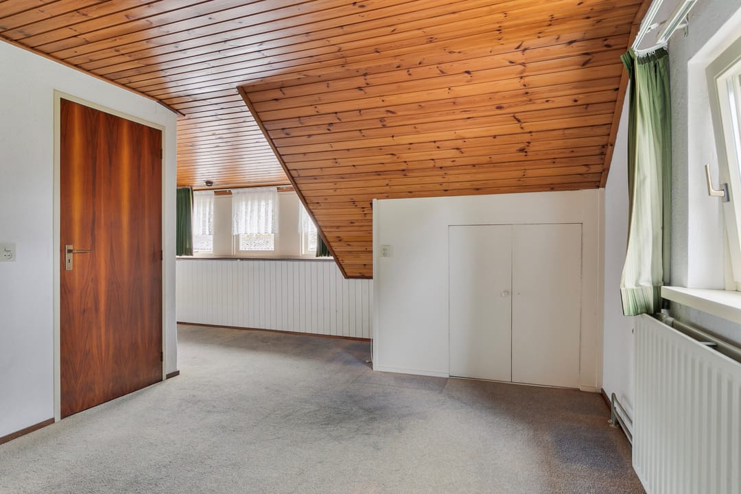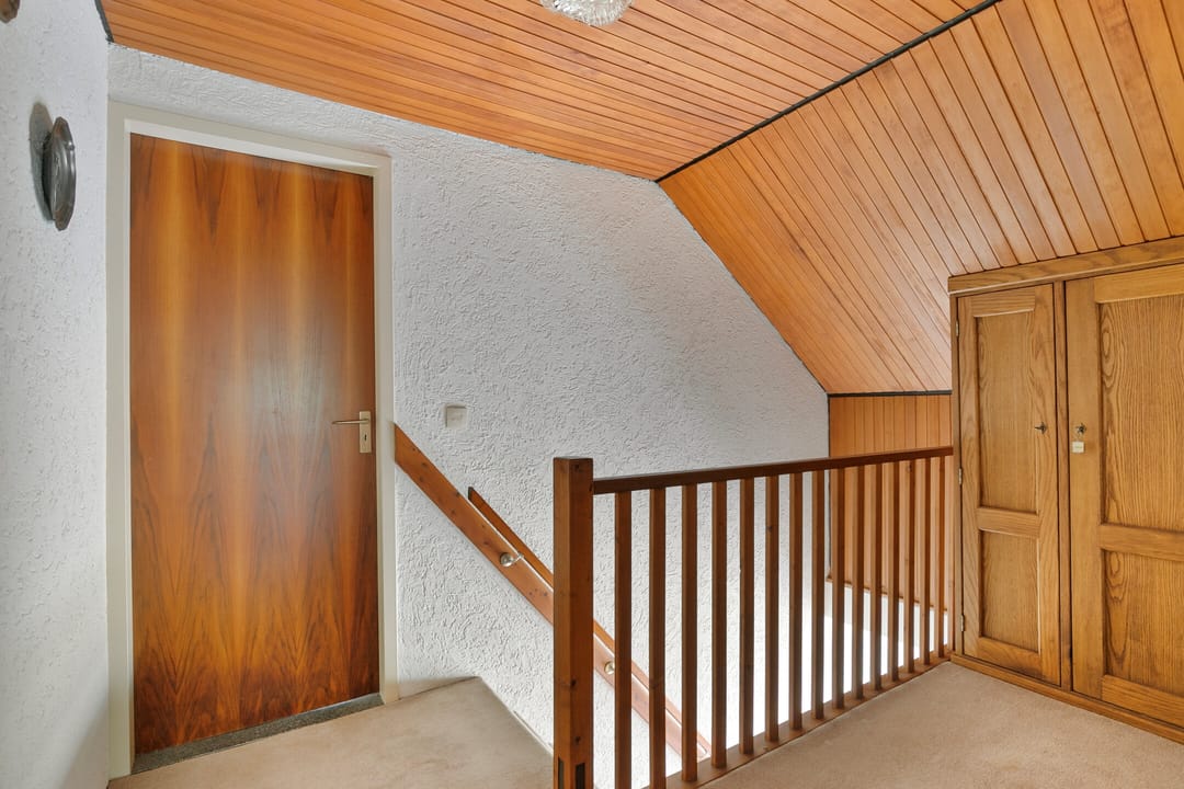 Verdieping: overloop met kastruimte, 3 kamers (waarvan 1 alleen te bereiken is via een andere kamer), allen met veel ingebouwde kastruimte.