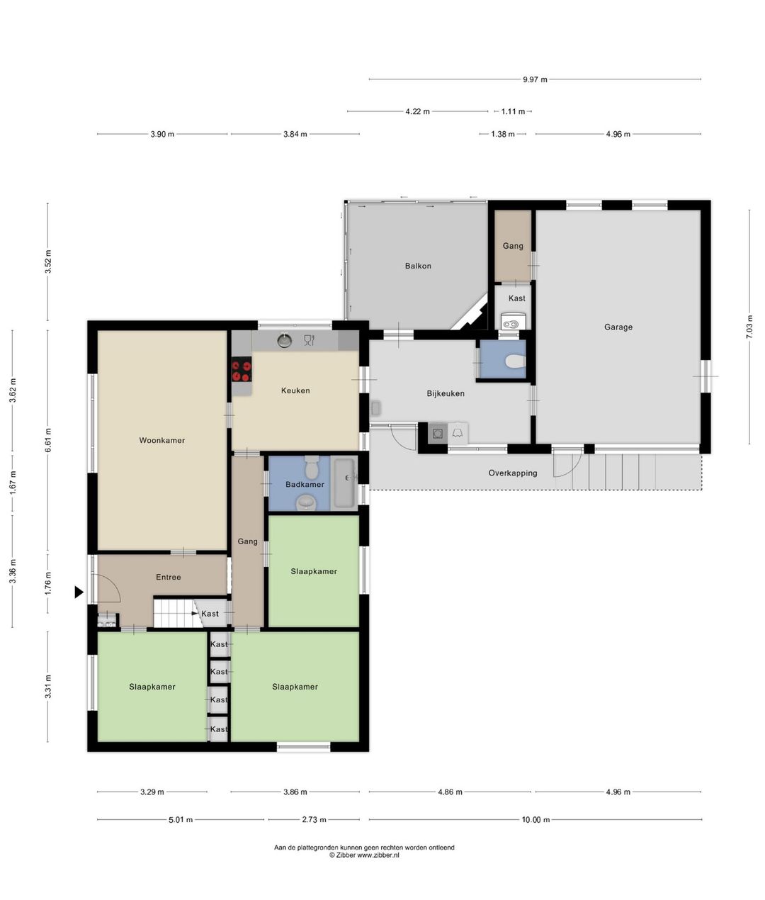 Nokhoogte 6,6 m, goothoogte 3,6 m.