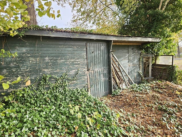De schuur verkeerd in een matig tot redelijke staat van onderhoud.