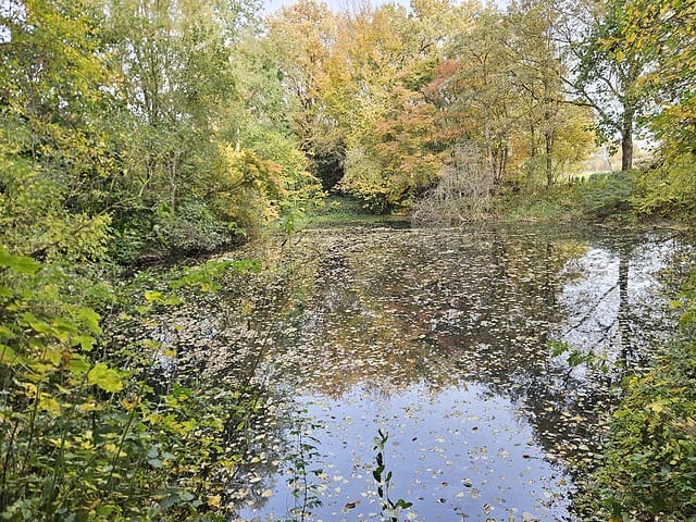 De ontwatering geschiedt door de omliggende sloten en op de in het perceel gelegen vijver