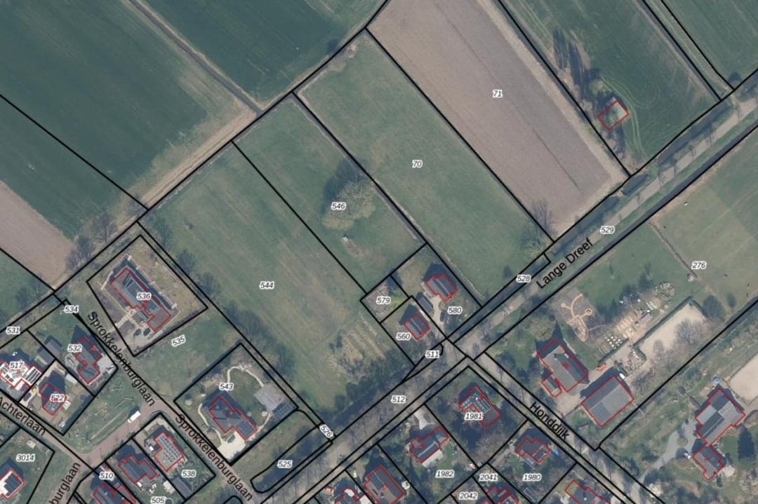 De percelen liggen langs de lange Dreef op de overgang van de bebouwde kom en het buitengebied van Culemborg. Het noordoostelijke perceel met nummer O 70 beschikt over een eigen dam/uitweg vanaf de Lange Dreef. Tussen de percelen O 70 en het middelste perceel O 546 ligt een watergang. In deze sloot ligt op circa het midden van het laatst genoemde perceel een dam die de percelen verbindt. De percelen O 546 en het westelijke perceel O 544 zijn niet van elkaar gescheiden.