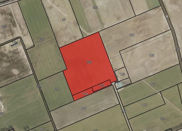 Bij inschrijving te koop aangeboden, geheel vrij gelegen zeer courante kavel landbouwgrond.