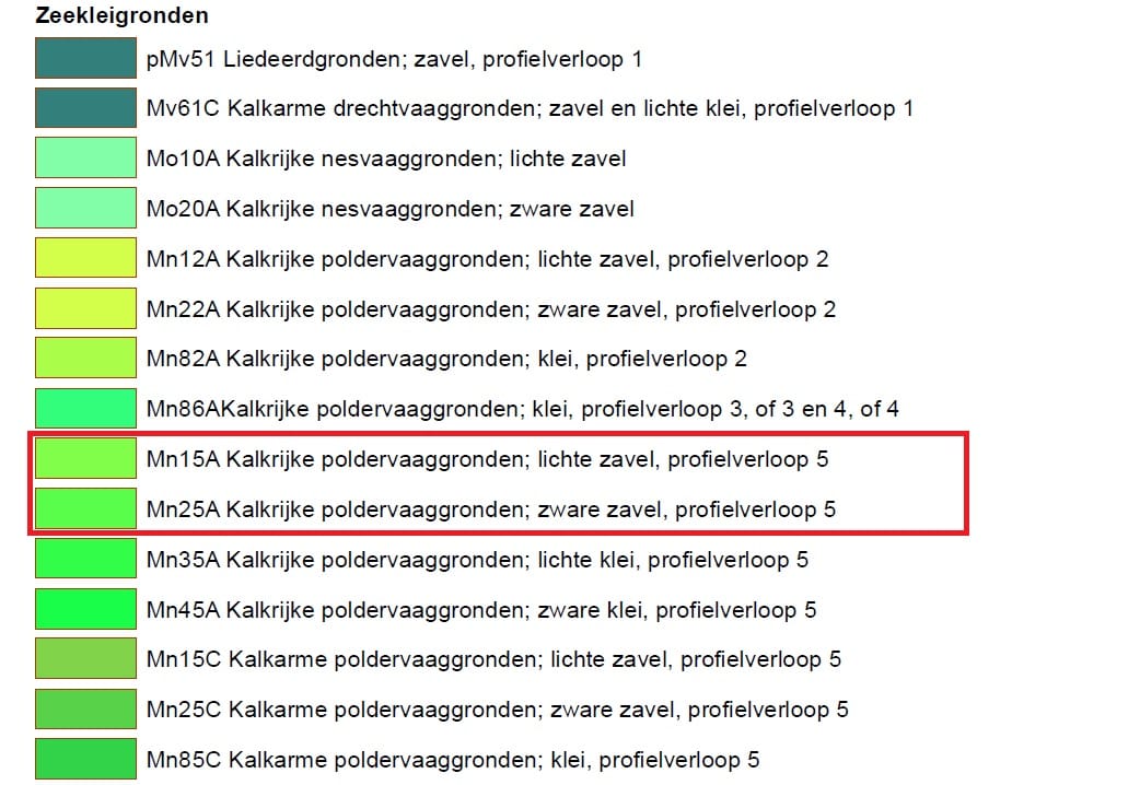 De landbouwgrond betreft lichte tot zware zavel, aangemerkt als kalkrijke poldervaaggronden, lichte en zware zavel; profielverloop 5.