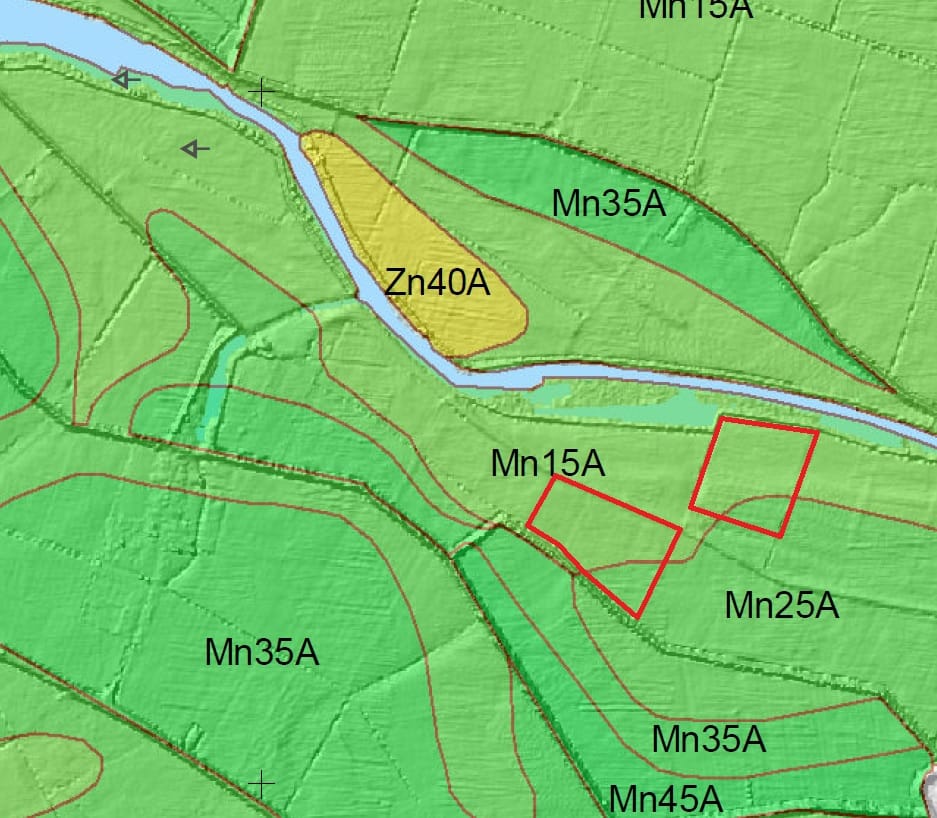 De landbouwgrond betreft eveneens lichte tot zware zavel, aangemerkt als kalkrijke poldervaaggronden, lichte en zware zavel; profielverloop 5.