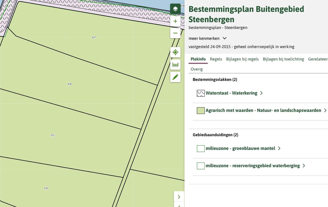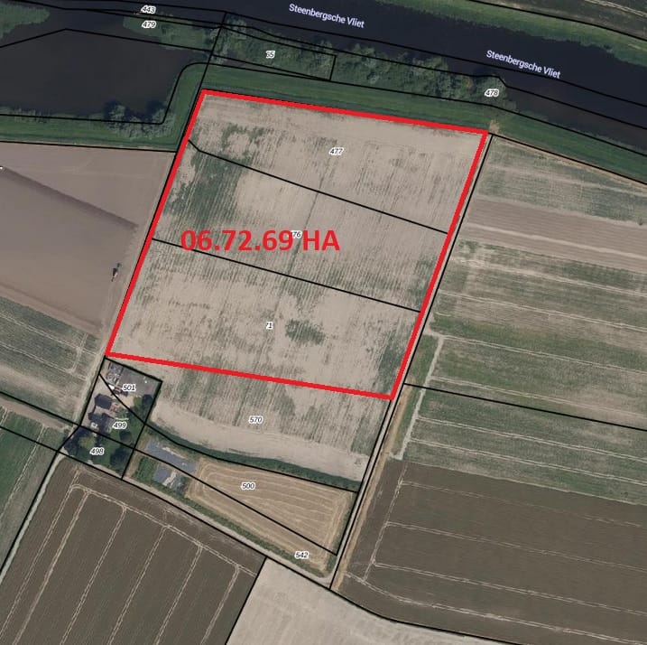 Tussen Steenbergen en De Heen gelegen in de Nieuwe Vlietpolder een tweetal percelen landbouwgrond, zijnde zavelgronden van een goede kwaliteit en voor vele teelten geschikt.
