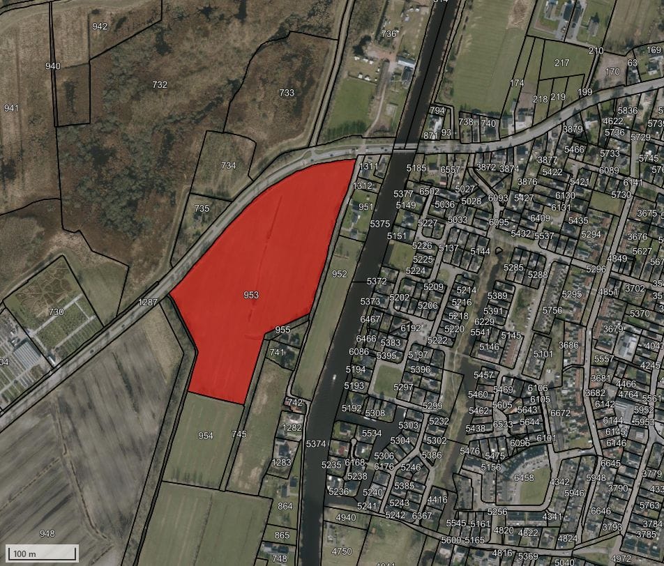 De kavel is kadastraal bekend gemeente Veenwouden sectie I nummer 953, groot 4.93.20 hectare. Het bij RVO gemelde gebruik betrof de afgelopen jaren: grasland en Rode klaver. De kavel kent een agrarische bestemming. De kavel is gemiddeld hoog gelegen in relatie tot de wijdere omgeving. De zandbodem van de kavel bestaat uit een moerige bouwvoor op zand (Stiboka-code: vWp).