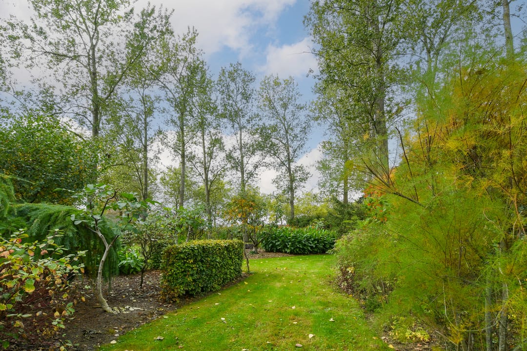 Dit schitterend gelegen perceel biedt een oase van rust en natuurlijke schoonheid. Omringd door volwassen bomen, kleurrijke struiken en weelderige beplanting vormt het een ideale plek om te ontspannen en te genieten van de natuur.