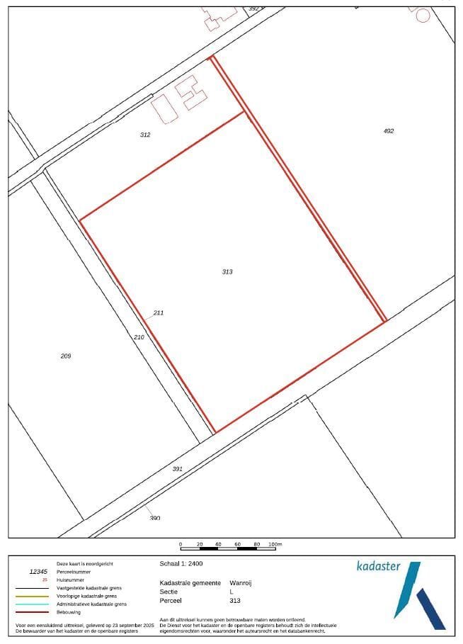 Perceel 1 is kadastraal bekend als: Gemeente Wanroij, sectie L, nummer 313, groot 5.58.10 ha.