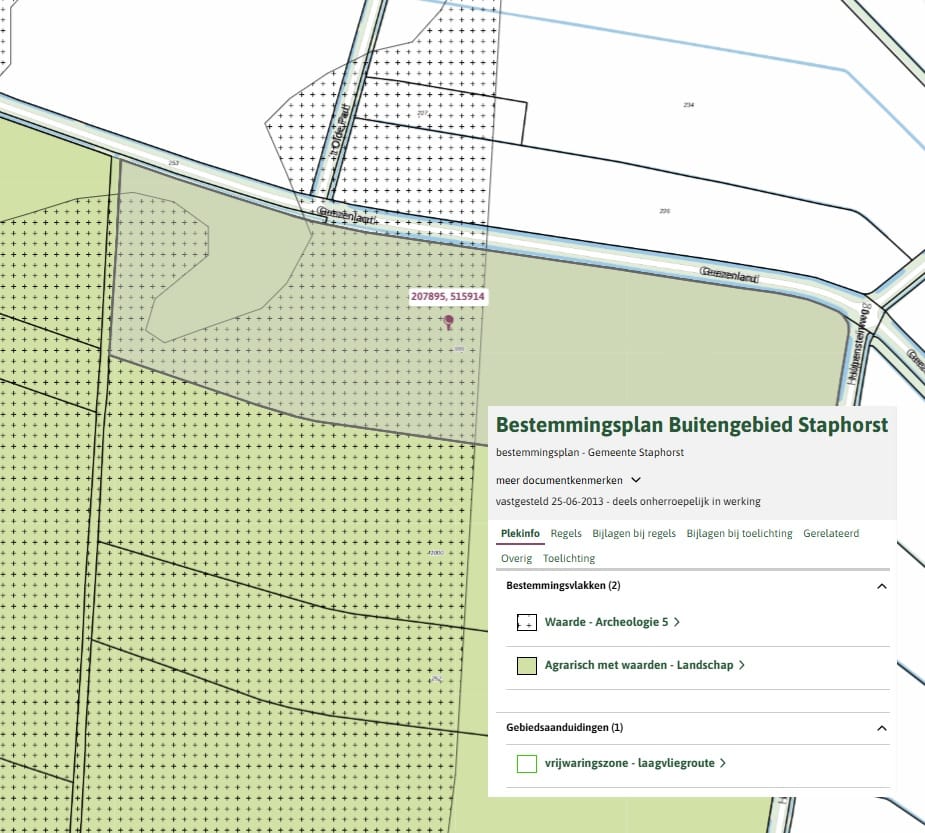 Deels dubbelbestemming Waarde – Archeologie 5, vrijwaringszone – laagvliegroute;