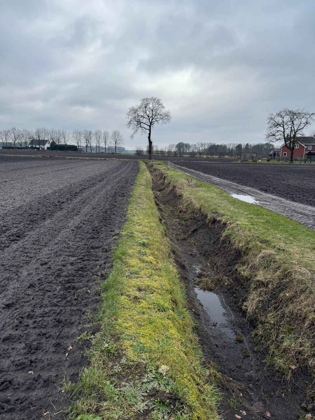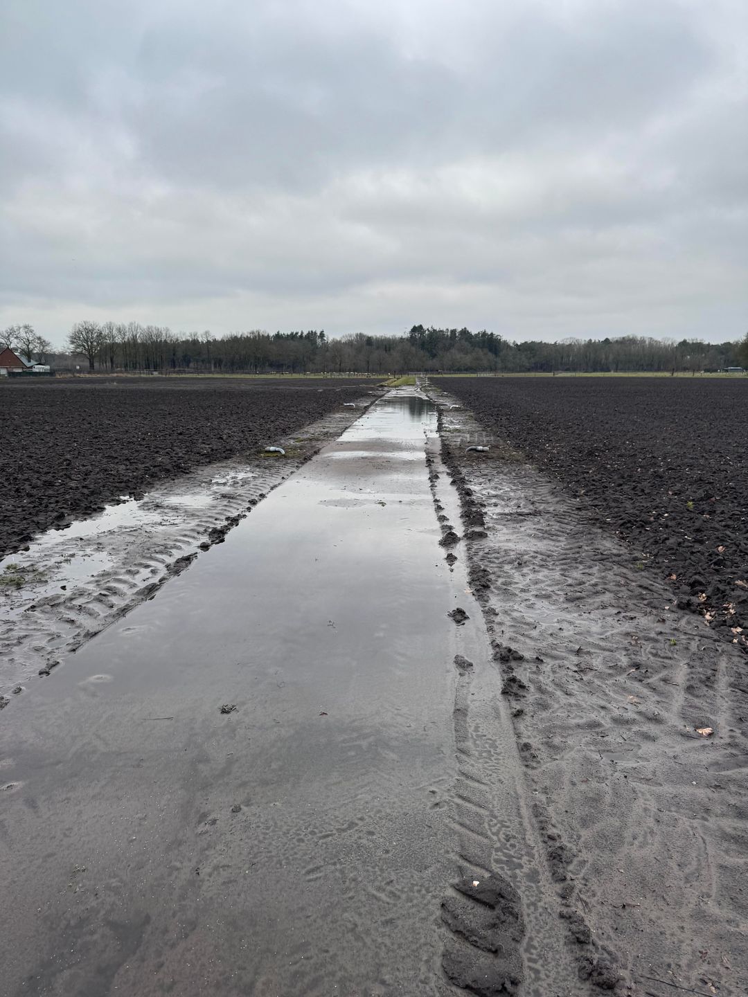 In het midden van de percelen loopt een betonpad.