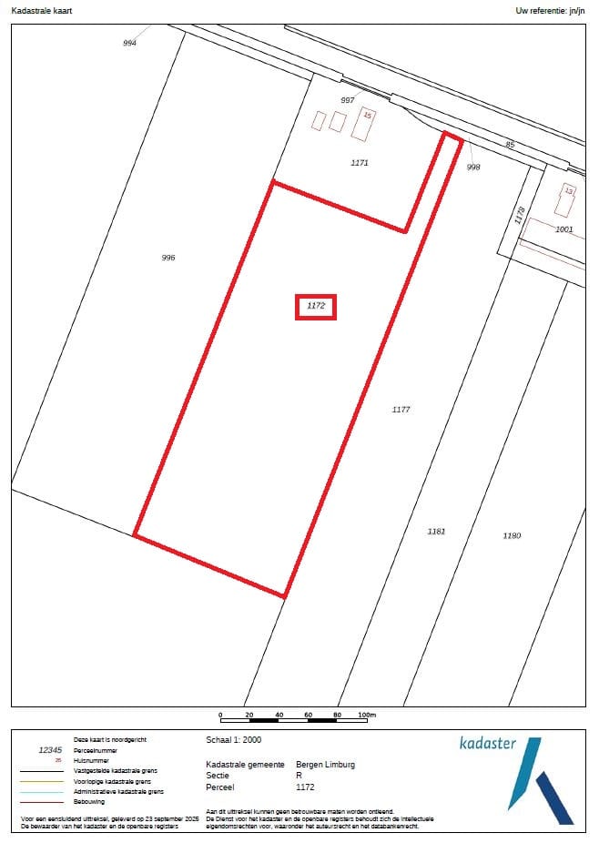 Het perceel is kadastraal bekend als: Gemeente Bergen L. sectie R, nummer 1172.