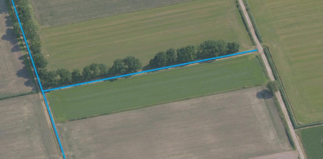 - Het perceel wordt ontwaterd via een schouwsloot (blauwe lijn op foto 8)