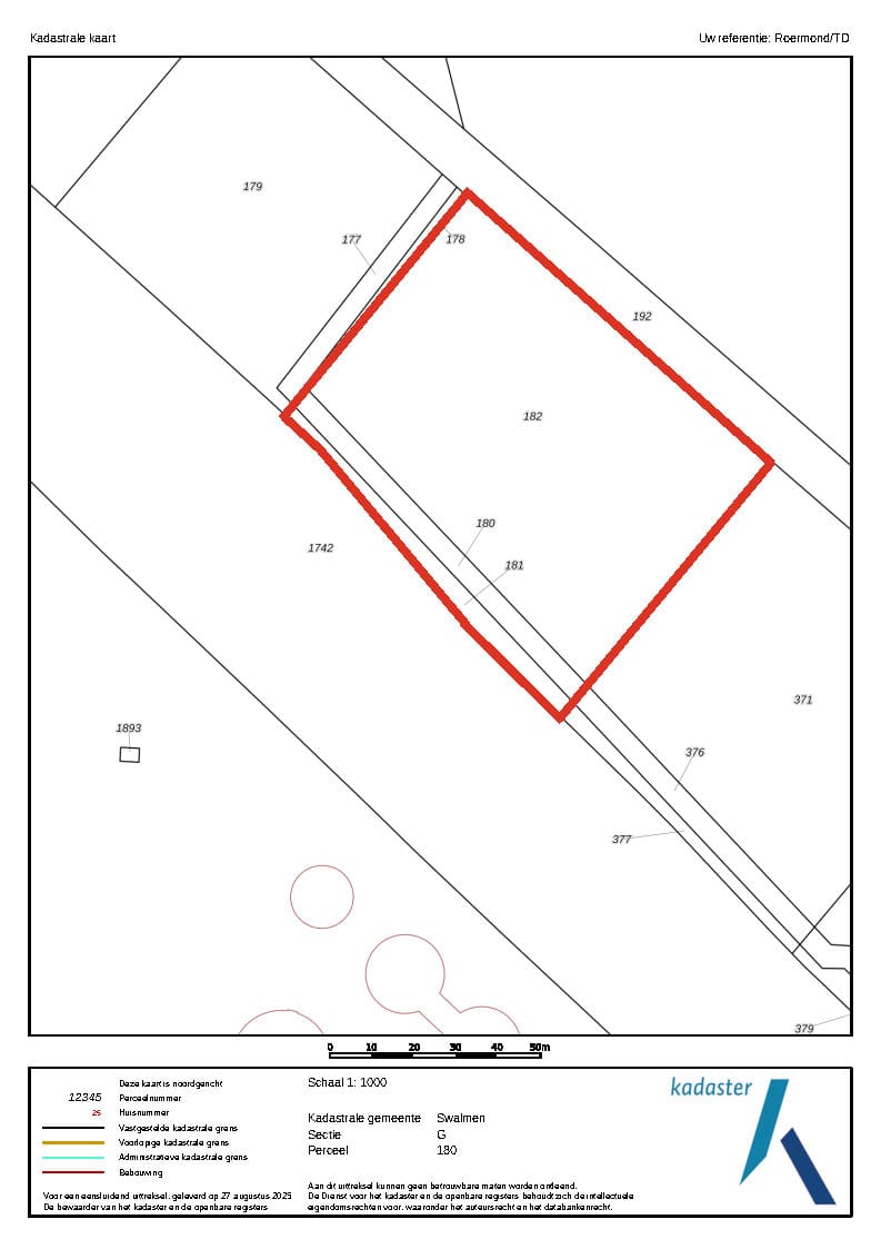 Dit perceel van 0.71.30 ha is gelegen in het landelijke buitengebied van Roermond en Swalmen, te midden van agrarisch gebied. De afgelopen jaren is het perceel in gebruik geweest als grasland en heeft daarmee de status 'Blijvend grasland'.