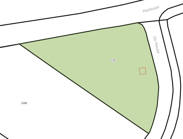 Het perceel is gelegen in de hoek van De Pekdel en de Markkade en is kadastraal bekend gemeente Waardenburg, sectie X, nummer 172.