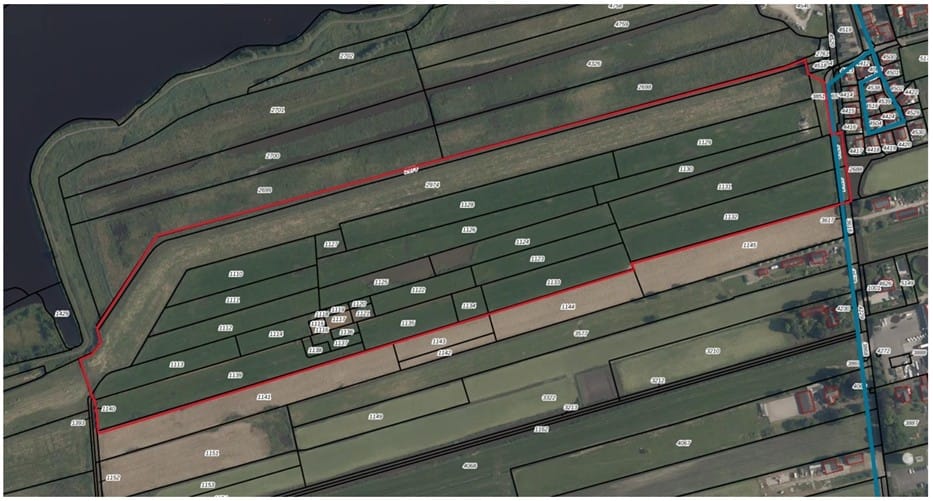 Het betreft een kavel bestaande uit drie percelen grasland alsmede een perceel dijkweiland.
