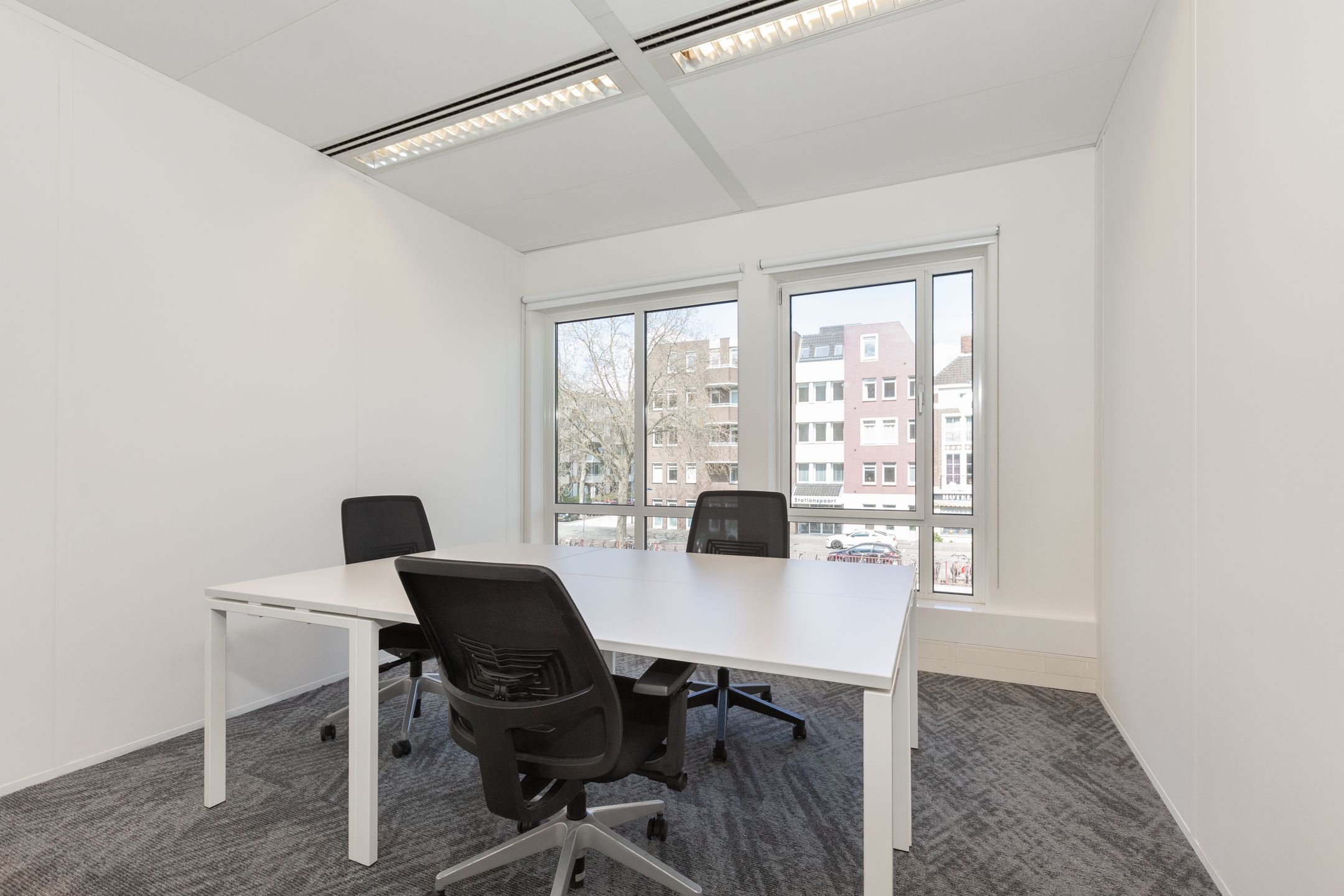 • Beschikbare bureauruimte voor een uur, dag of maand