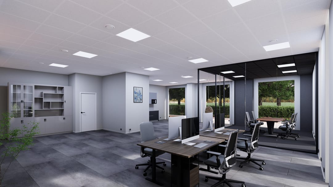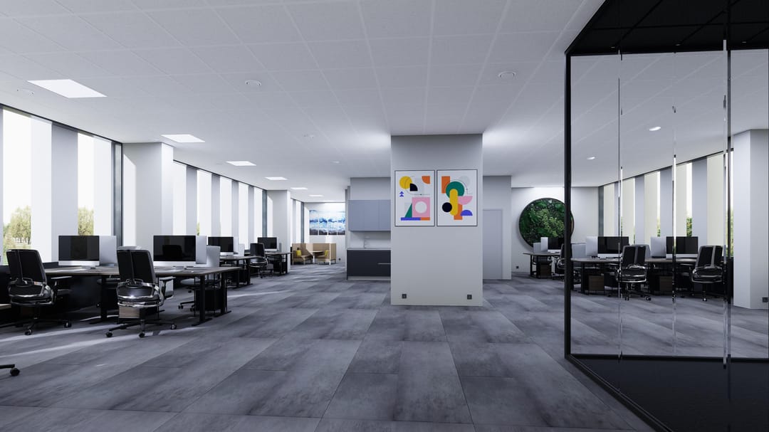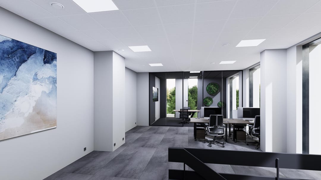 De kantoren zijn turn-key afgewerkt en direct gebruiksklaar. Denk aan pvc-vloeren, glazen vergaderruimtes, afgewerkte wanden en plafonds, een moderne pantry, ingerichte toiletten en volledige installaties voor data, elektra, water en verwarming. Dankzij de hoge plafonds en grote raampartijen geniet elke ruimte van veel daglicht en een prettig binnenklimaat. Het is tevens mogelijk de kantoorvilla's aan elkaar te koppelen.
