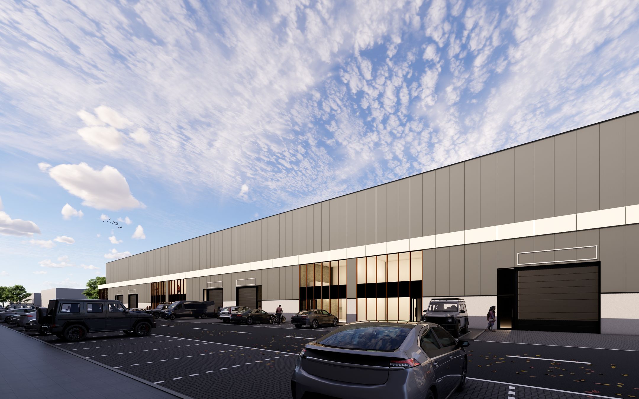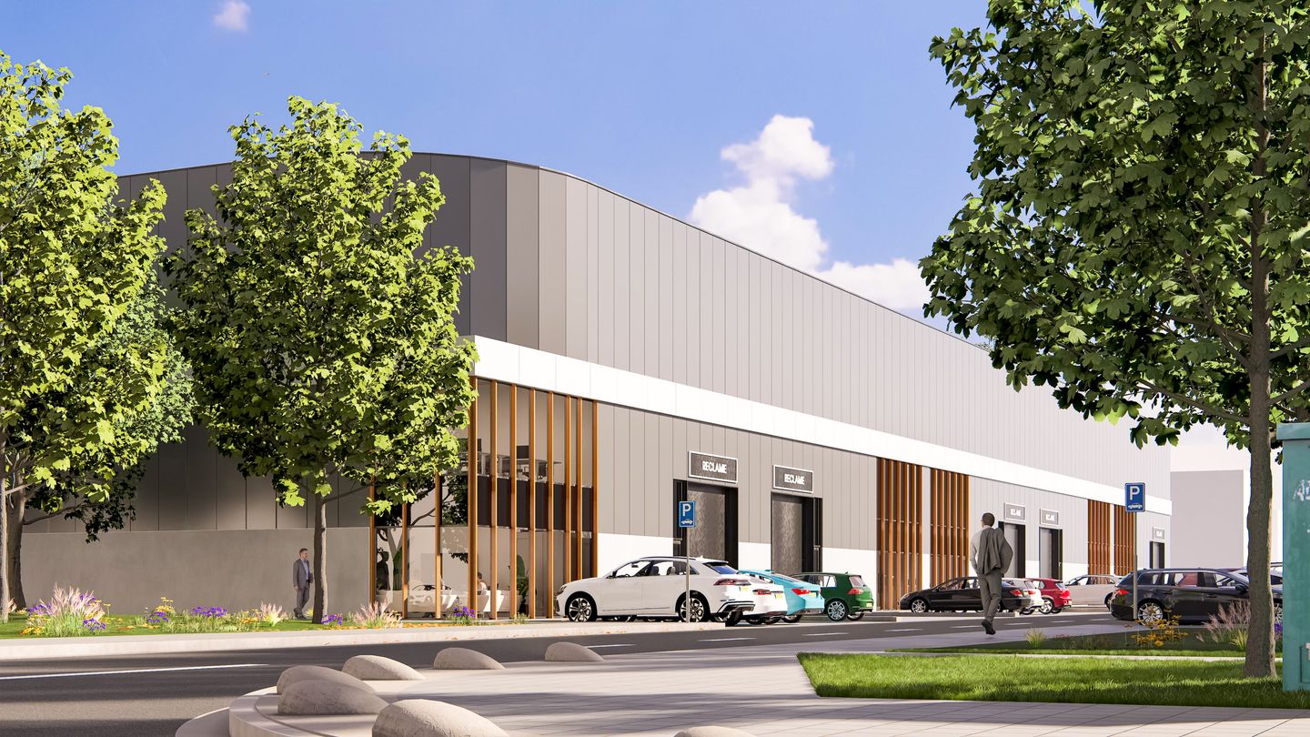 - 2 elektrisch bedienbare overheaddeur van 4,50 meter breed en 4,50 meter hoog per unit;