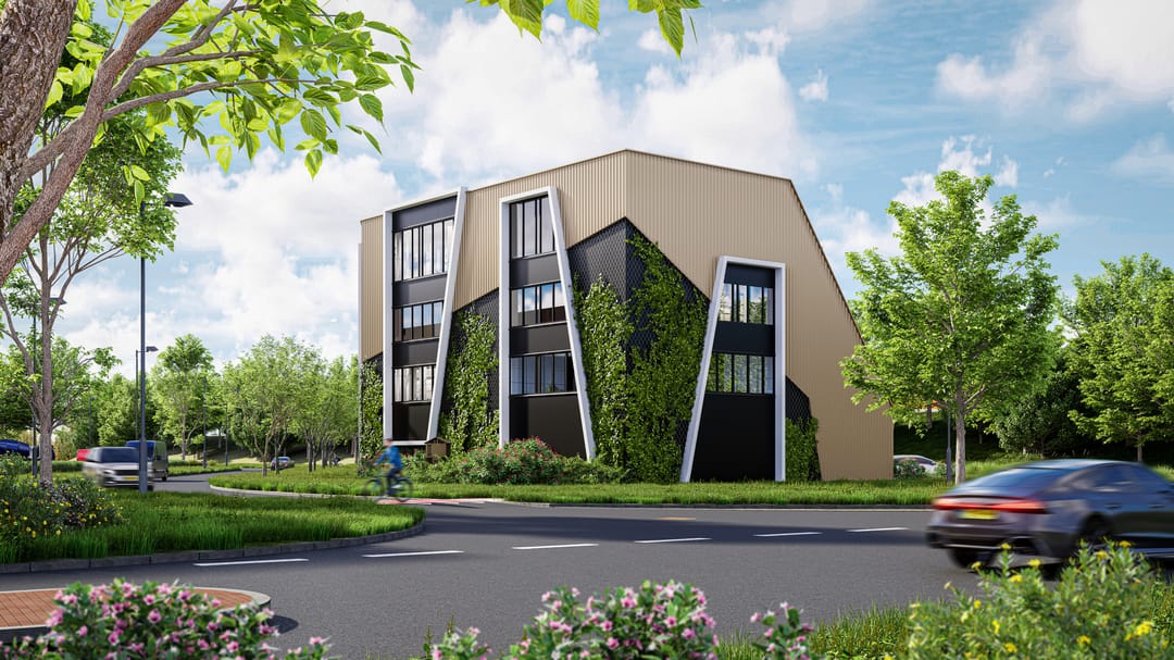 De gevels worden uitgevoerd in geïsoleerde sandwichpanelen in een donkergrijze kleur. Voor een deel van de gevel komt een net ten behoeve van begroeiing, gecombineerd met goud- of champagnekleurige geprofileerde panelen. Dankzij de toegepaste isolatielaag behalen de sandwichpanelen een isolatiewaarde van Rc 4,7 m²K/W. Alle panelen worden compleet geleverd met de benodigde lekdorpels, waterslagen, dakkappen, hoekstukken en aansluitdelen.