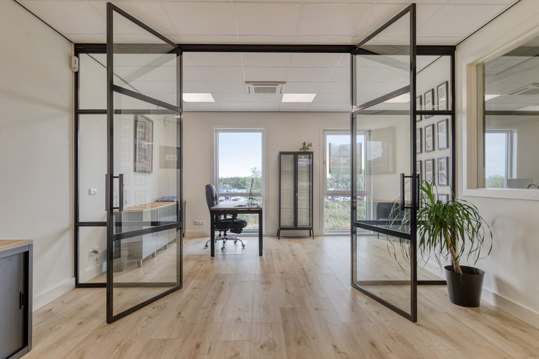 • Separate ruimte afsluitbaar d.m.v. glazen wand met hoge deuren