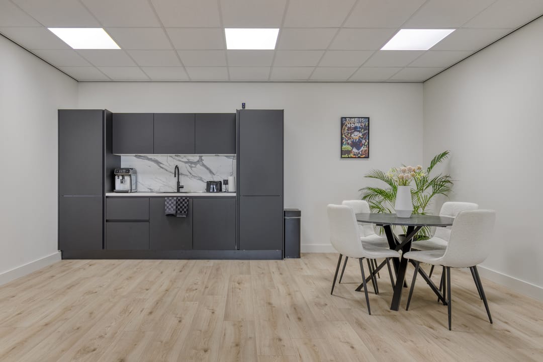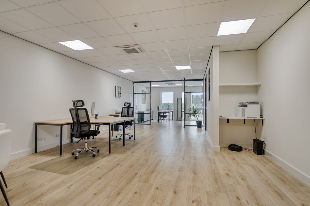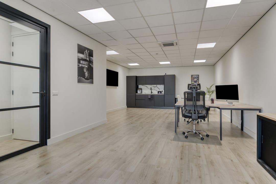 Moderne bedrijfsunit per direct beschikbaar voor de verhuur. De unit is tot in de puntjes afgewerkt en voorzien van alle benodigdheden. De begane grond beschikt over een bedrijfsruimte met achterin een separate vergaderruimte voorzien van airco die tevens ook gebruikt kan worden als extra opslag. De eerste verdieping heeft een moderne uitstraling en is voorzien van een pantry. Aan de voorkant van de ruimte bevindt zich een mooie kantoor-/vergaderruimte afgescheiden door middel van de glazen wand met hoge deuren, hierdoor heeft de gehele bovenverdieping veel natuurlijke daglichtinval.