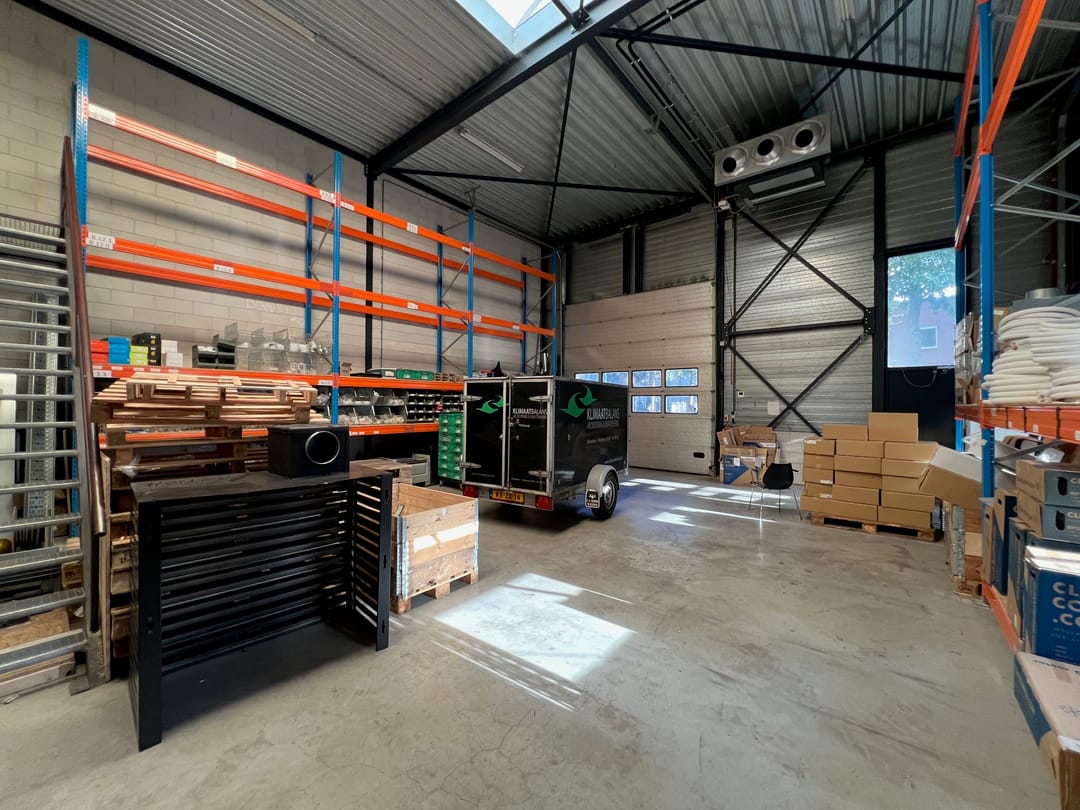 De bedrijfsruimte aan de achterzijde beschikt o.a. over een onderheide betonvloer, een elektrische overheaddeur, daglichttoetreding via lichtstraat en gevelkozijnen, vrije hoogte van ca. 5,98 meter en verwarming door middel van een elektrische warmtepomp. In de bedrijfsruimte bevindt zich tevens een betonnen entresolvloer (gelegen direct achter de kantoorruimte op de 1e verdieping, boven de showroom).