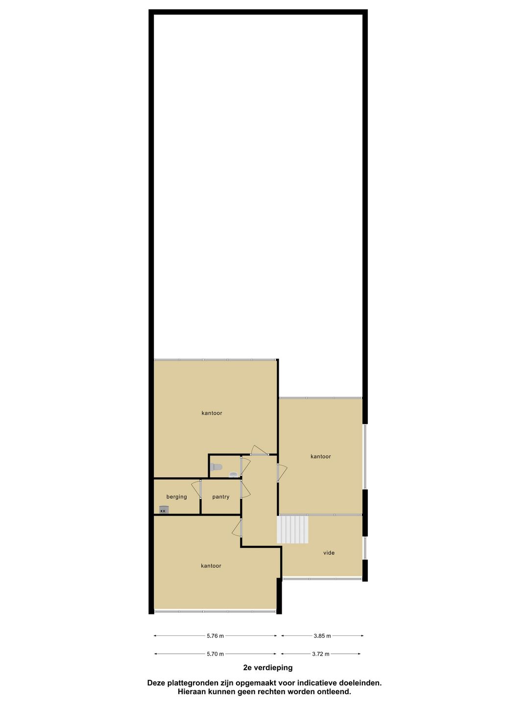 - indeling 2e verdieping: overloop en gang, drie kantoorcompartimenten, alsmede een afsluitbare pantry en opslagruimte;
