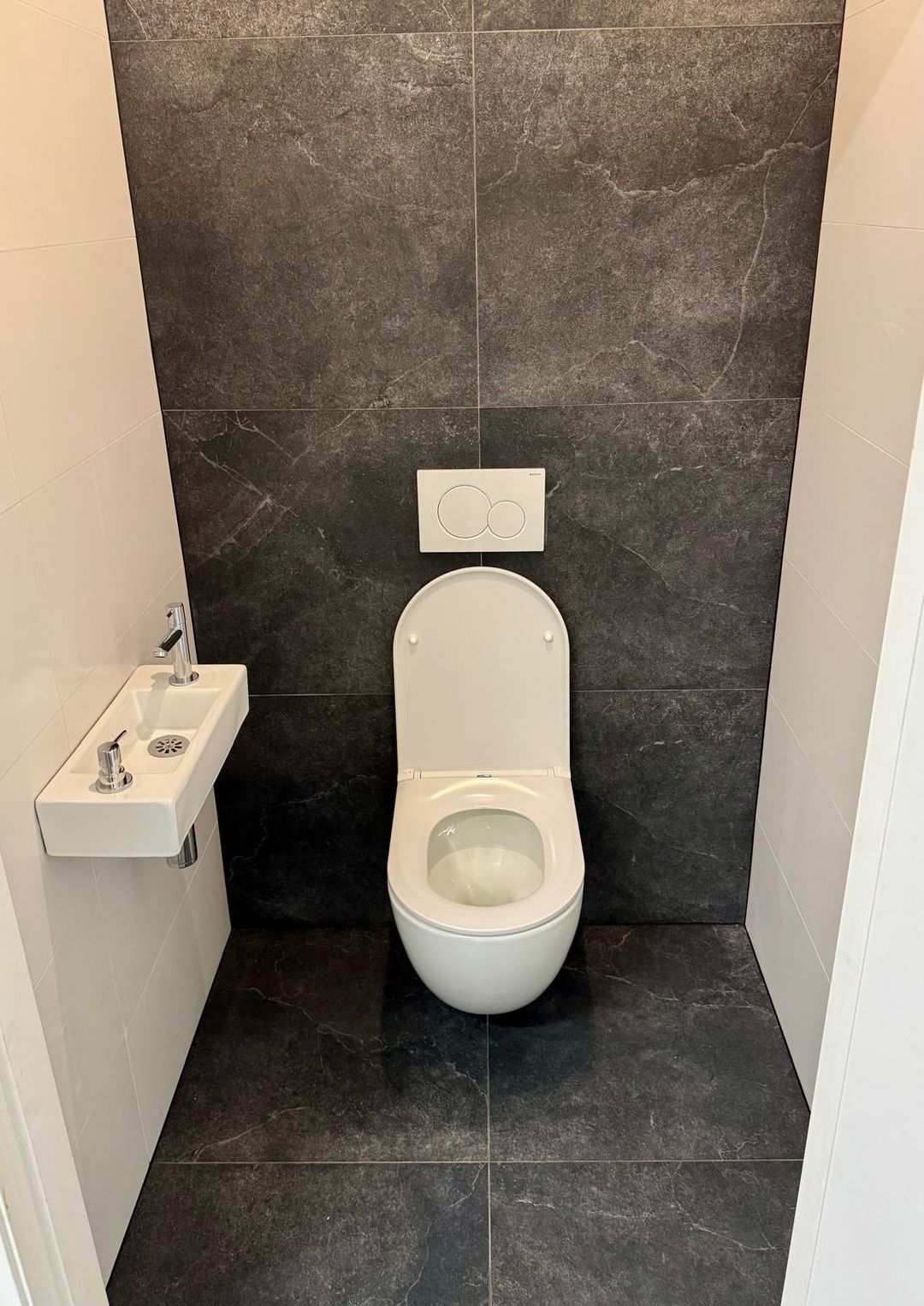 Op de begane grond vindt u een betegeld toilet met fontein en een hoogwaardige elektra-installatie, waaronder led-armaturen in het plafond, negen inbouw stopcontacten en toiletverlichting met bewegingsmelder. Voor een optimaal binnenklimaat is de ruimte voorzien van een Mitsubishi airco-installatie voor zowel verwarming als koeling. Alle muren zijn gestuct en afgewerkt met een witte primer, wat zorgt voor een frisse en moderne uitstraling. Daarnaast zijn er extra waterkranen aangebracht naast de meterkast en het toilet, inclusief afvoer ten behoeve van een spoelbak of pantry. Optioneel kunt u de bestaande roldeur vervangen door een vast kozijn met glas, waardoor extra daglicht wordt gecreëerd.
