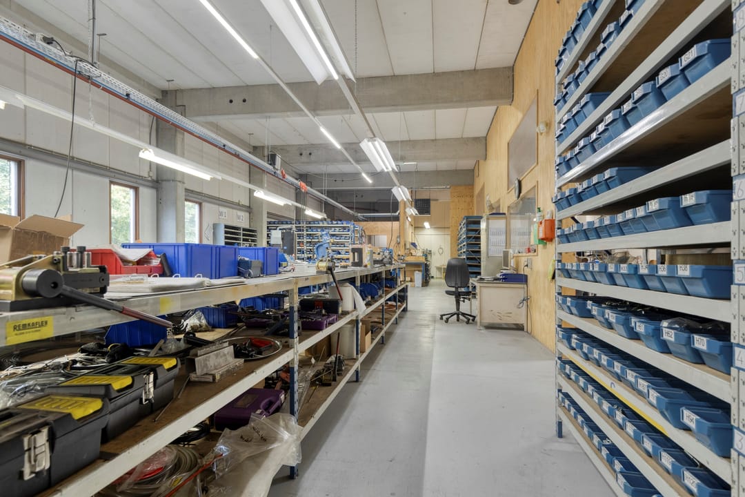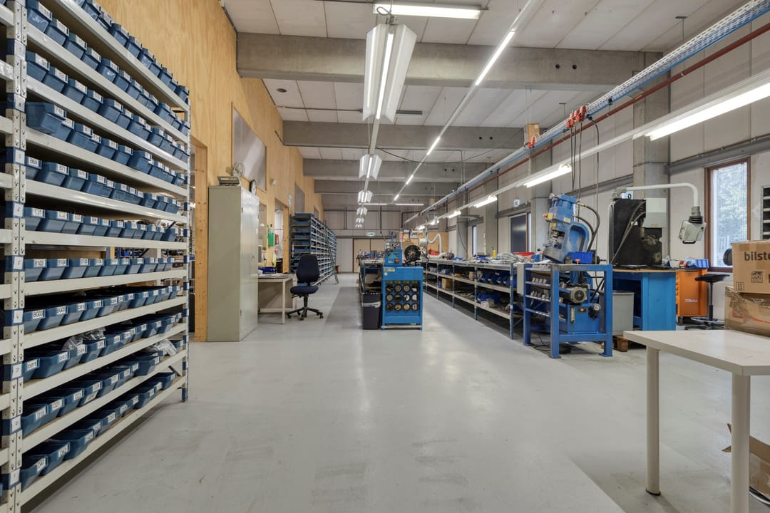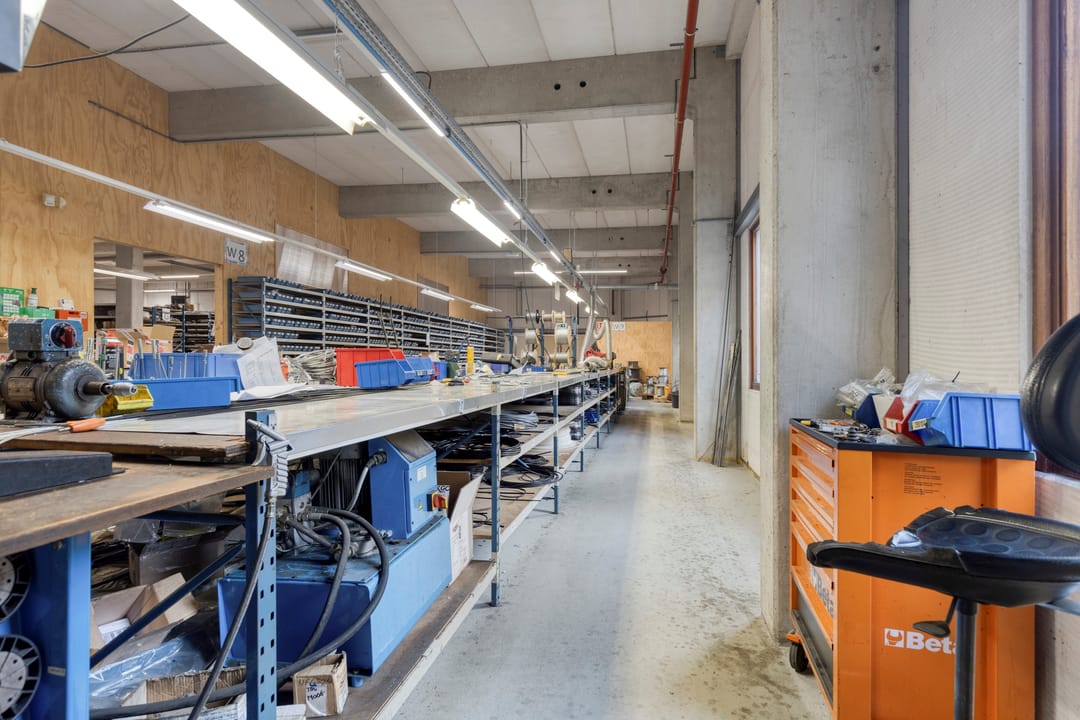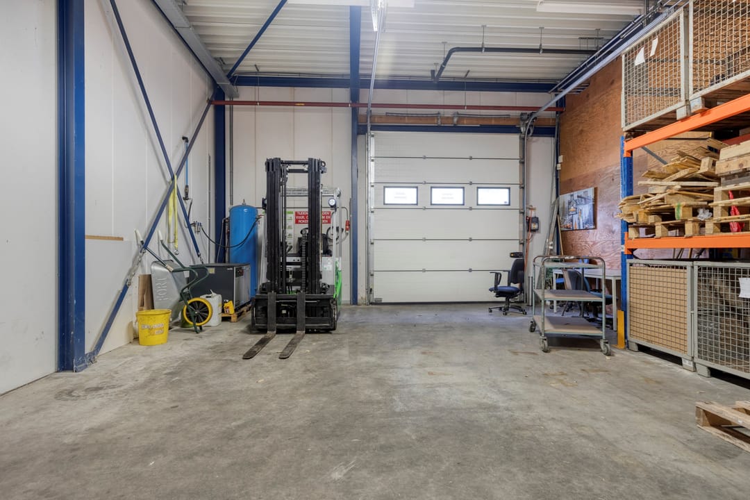 De bedrijfshal heeft een overheaddeur en grote open werkvloeren voor een optimale indeelbaarheid. Daarnaast is een deel van de ruimte eenvoudig in te richten als showroom met een hoogwaardige uitstraling.