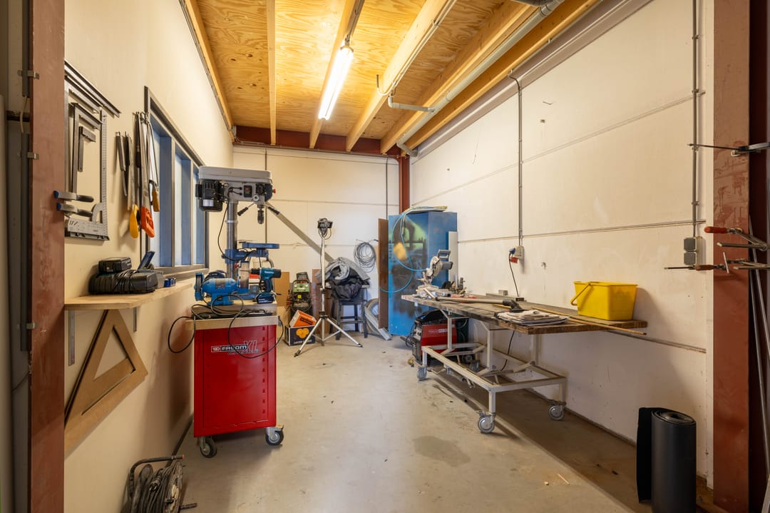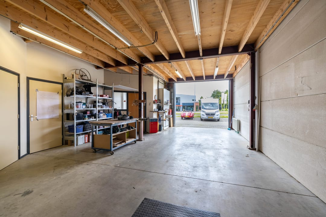 De bedrijfsruimte is toegankelijk via een centrale entree en heeft daarnaast een elektrische overheaddeur. Ook is er een afsluitbare werkplaats gerealiseerd, toegankelijk vanuit de bedrijfsruimte.