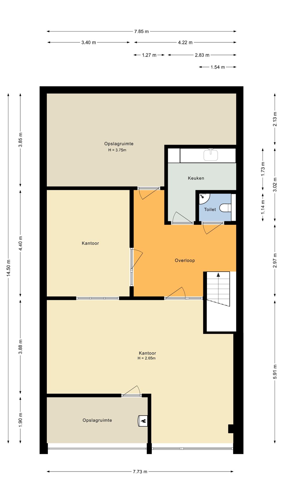 Op de verdieping is kantoor aanwezig die via een vaste trap te bereiken is. Hier is tevens een keuken en toilet ruimte.