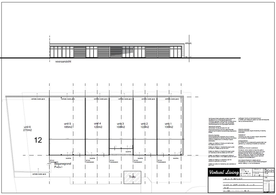 Het bedrijfsverzamelgebouw is gerealiseerd in een gesloten vorm, waarbij de units zijlings aan elkaar zijn gebouwd. De units hebben een hoogte van circa 3,80 meter, voorzien van een eigen entree, overheaddeur, een glas pui met loopdeur, toilet, een betonnen vloer en een meterkast.