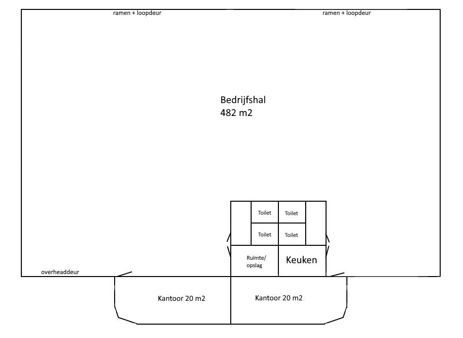 De bedrijfs- en kantoorruimte wordt opgeleverd in huidige staat, voorzien van: