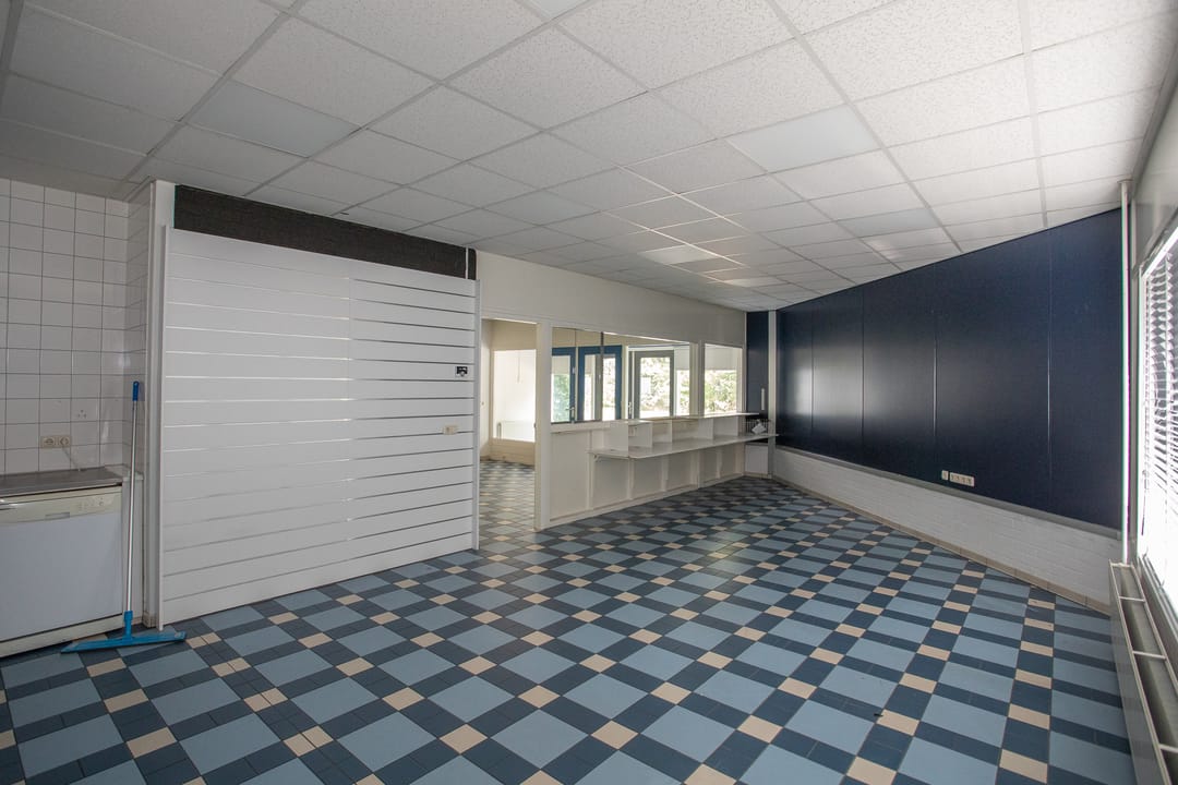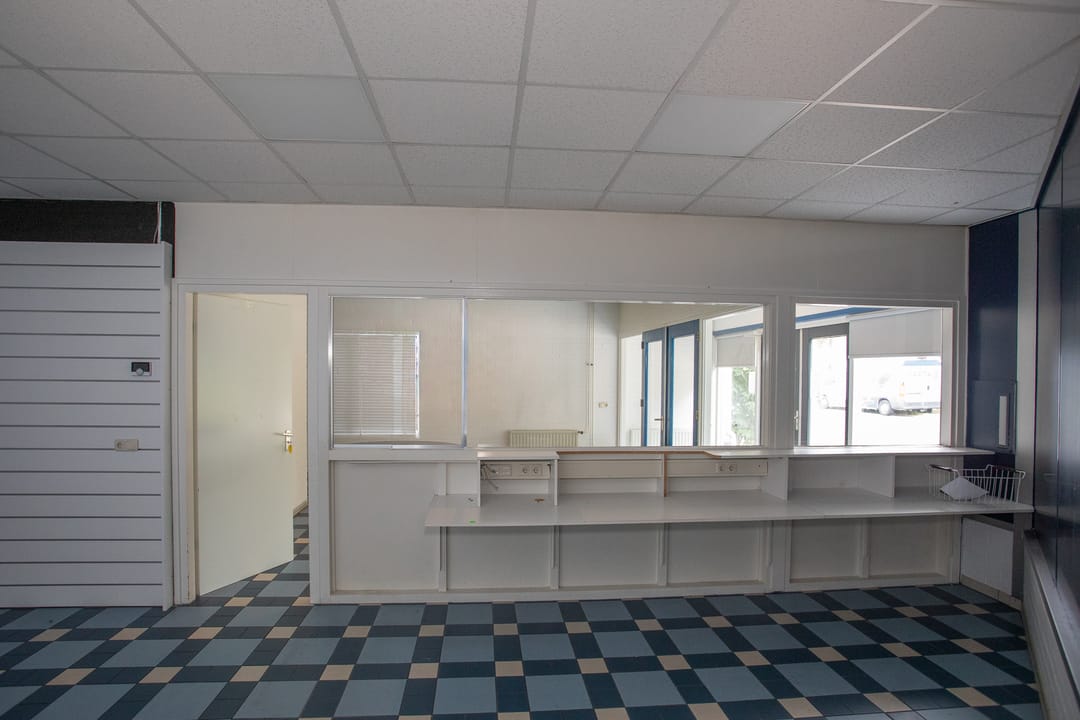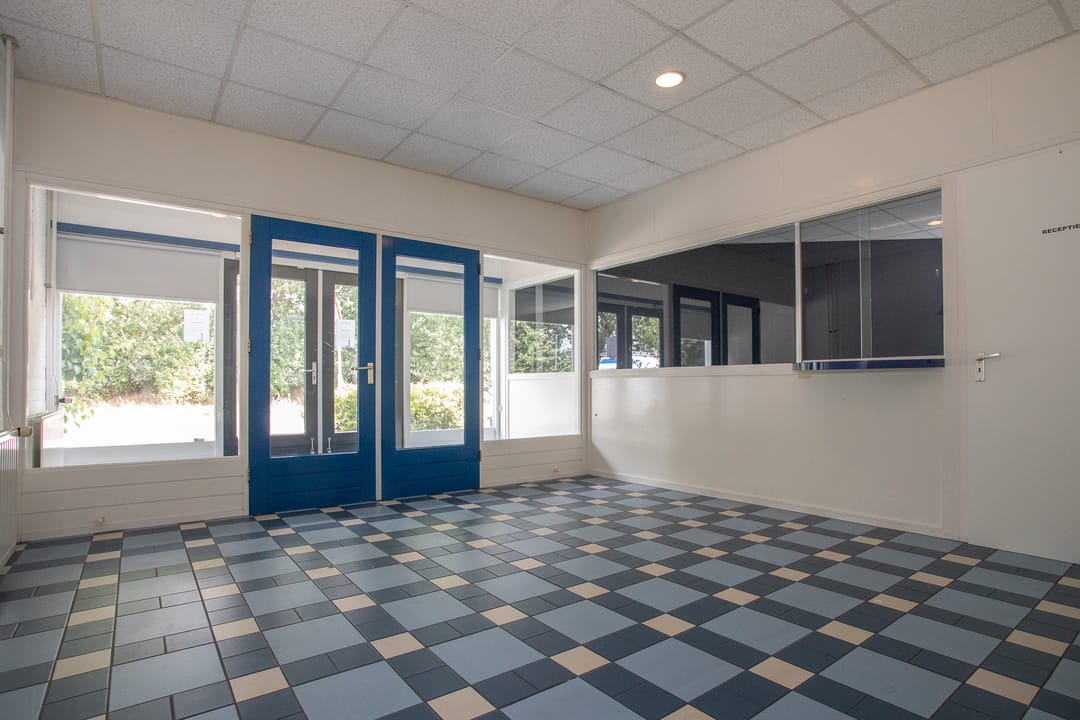Eigen entree met tochtportaal, ontvangstruimte met balie, toiletgroep en gang met voorraadkast en technische ruimte. Backoffice met pantry, grote open werkruimte met toegang tot meerdere aparte (kantoor)ruimtes en toiletgroep. Kantine met toegang tot bedrijfsruimte met overheaddeur. Magazijn en gezamenlijke berging met overheaddeur.