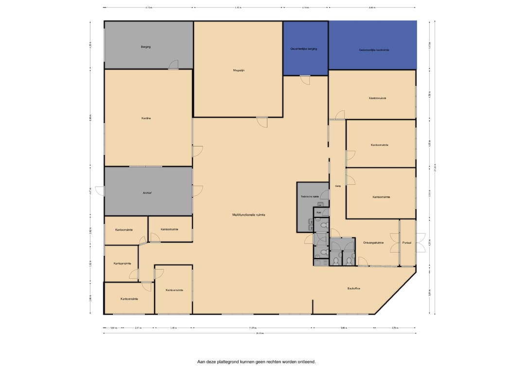 - Gezamenlijke bedrijfsruimte met overheaddeur, gedeeld met de naastgelegen huurder;