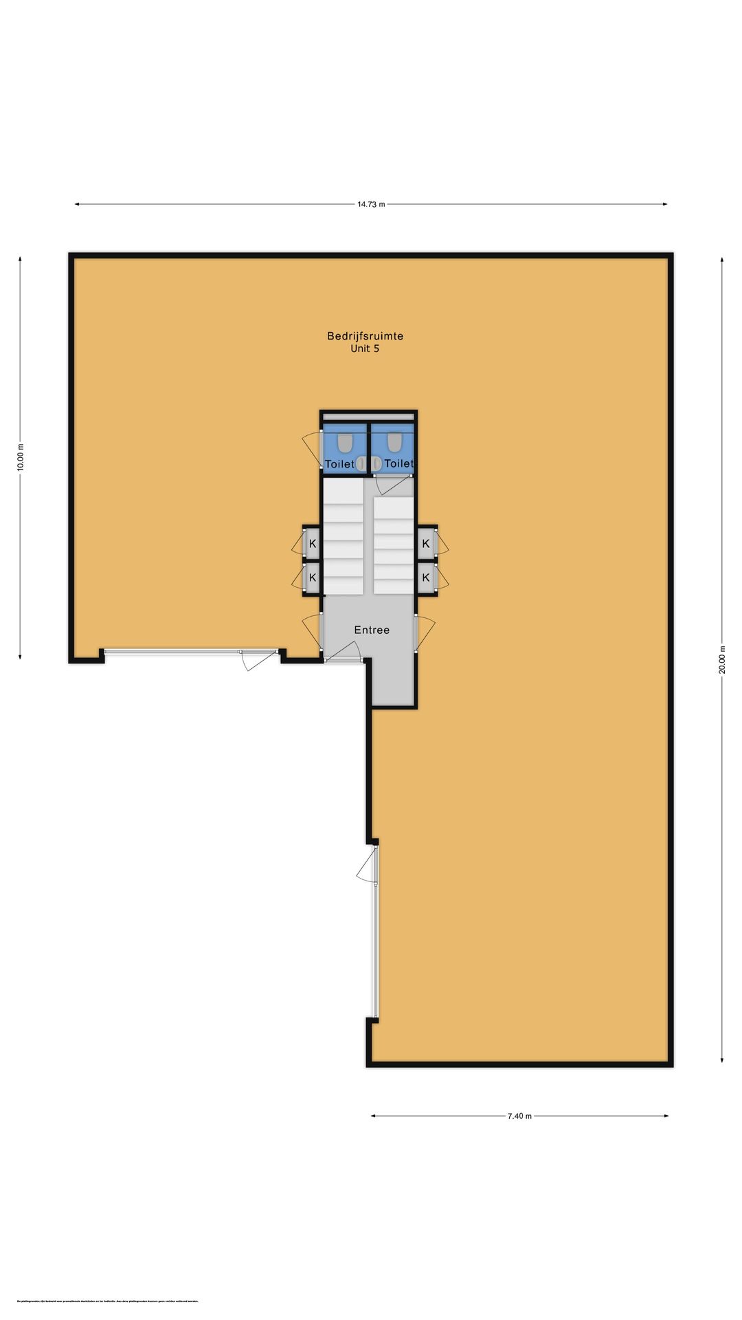 - Twee automatische overheaddeuren per unit (ca. b4500 x h4800 mm)