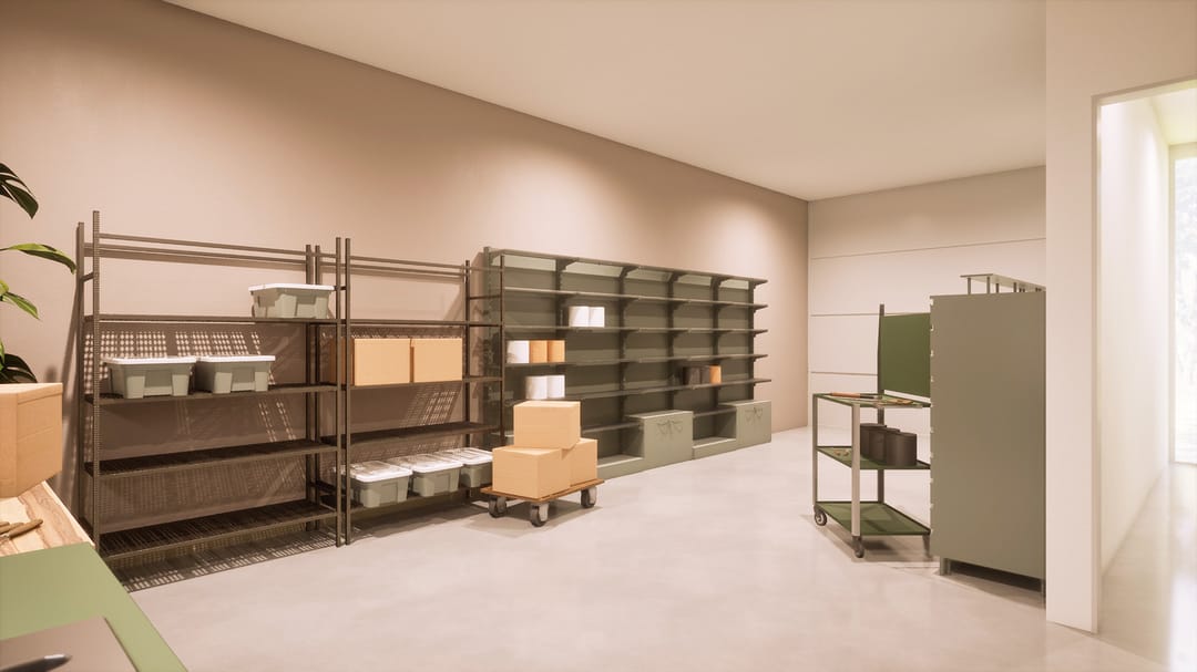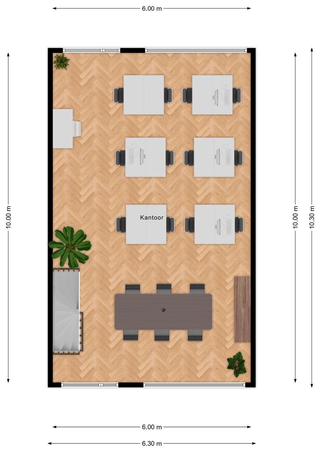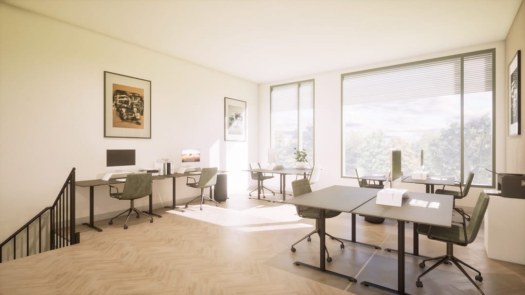 • 1e verdieping: multifunctionele kantoorruimte