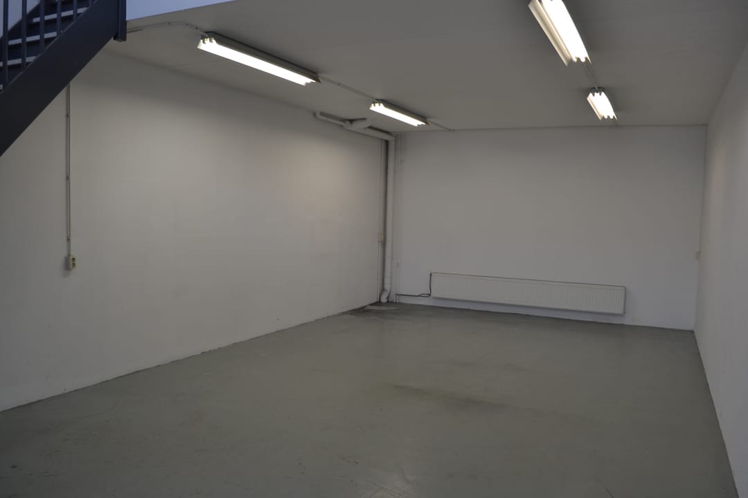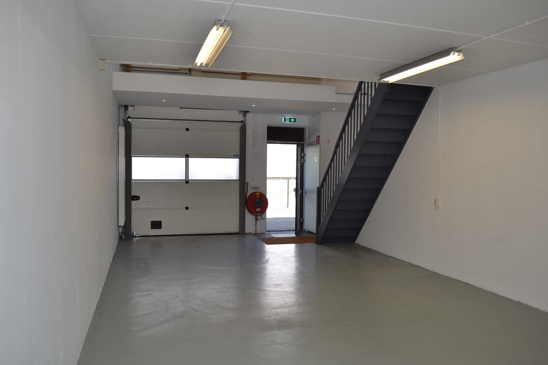 De unit beschikt over een open bedrijfsruimte met hoge plafonds, ideaal voor opslag, lichte productie, showroom/kantoor of als werkplaats. Er is een eigen entree met een overheaddeur.