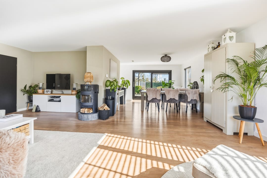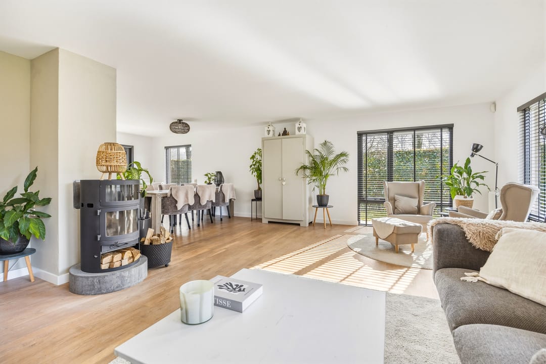 Deze ruime woning, met de mogelijkheid tot maar liefst 5 slaapkamers, biedt de mogelijkheid van kantoor aan huis en werken naast de deur in de loods. Werken kan op deze locatie dus goed maar ook liefhebbers van het buitenleven en een ruime tuin vinden het hier heerlijk! Het woonhuis beschikt over een hedendaagse afwerking. De tuin is prachtig beplant en is door de diepte en ligging over de hele dag zonnig. Ook in het woonhuis zelf schijnt de zon door de ramen, van 's morgens vroeg tot 's avonds laat! De oprit biedt plaatst voor 3 tot 4 auto's en is toegankelijk met een op afstand bedienbaar hek.