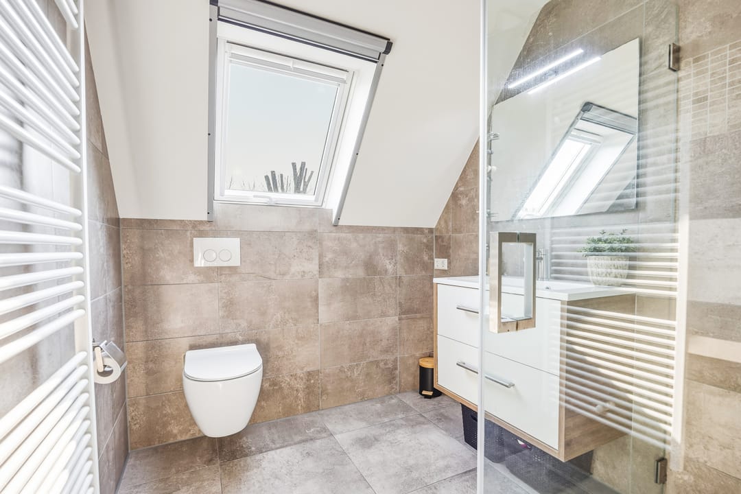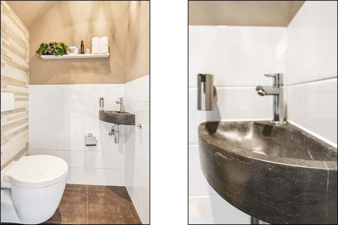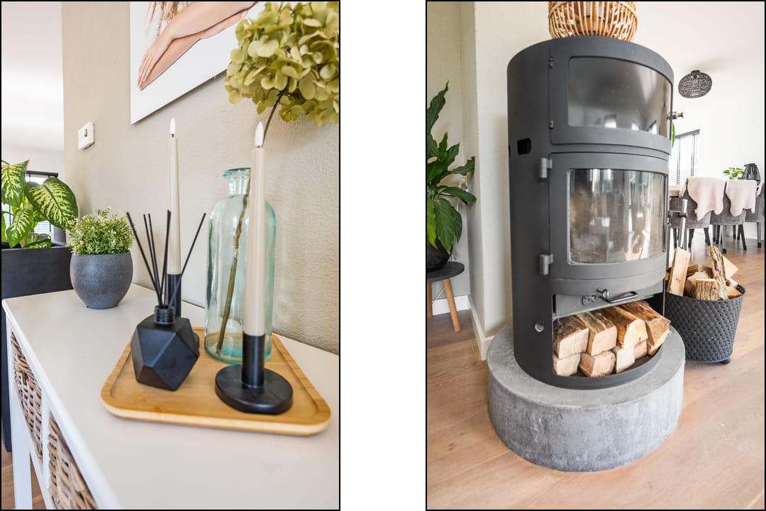 - om esthetische redenen is de kopgevel aan de woningzijde bekleed met houten rabatdelen en de gevel aan de tuinzijde met kunststof plankdelen