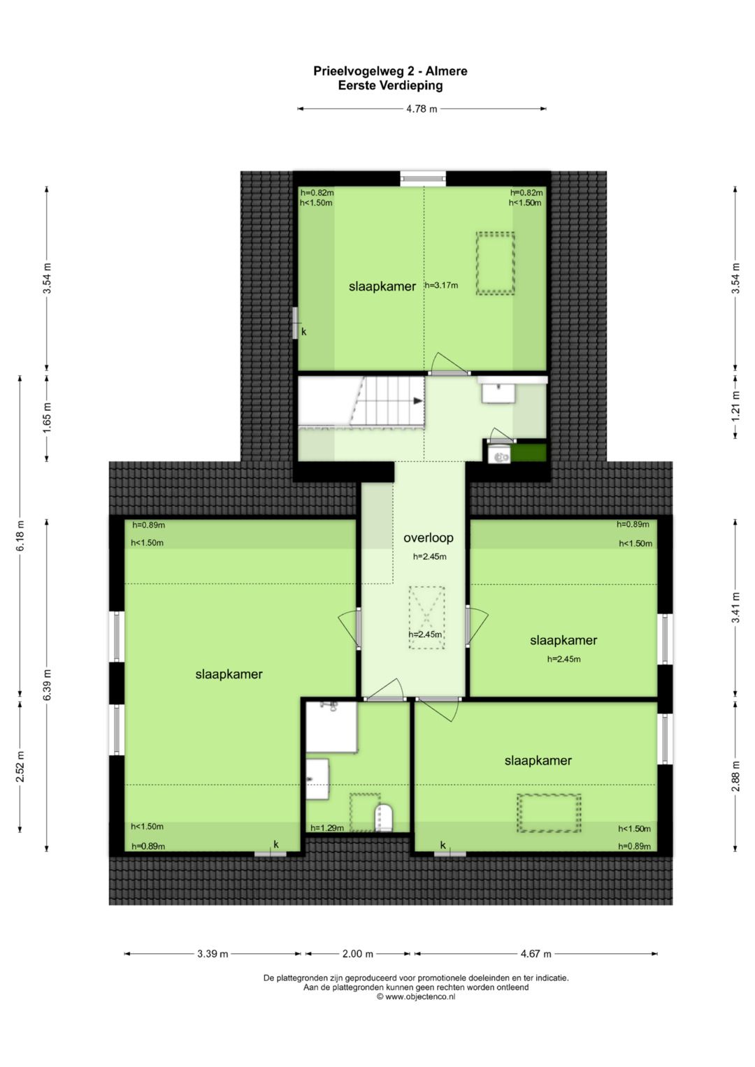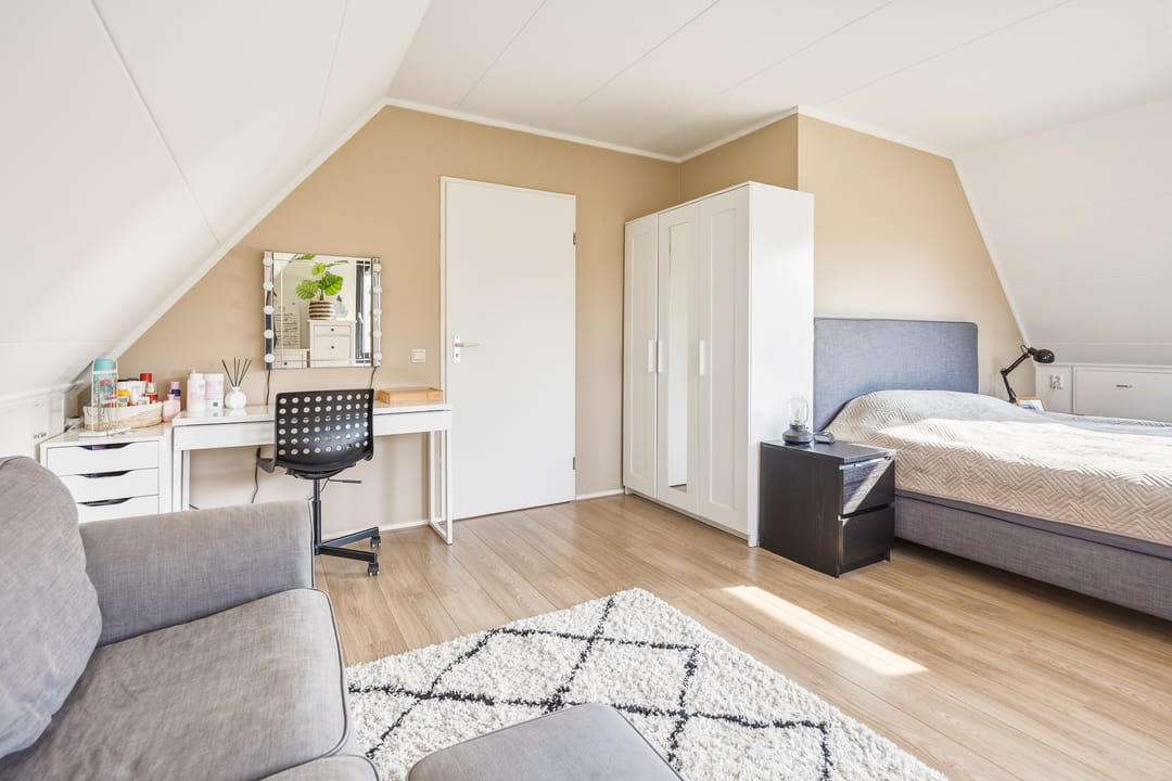 Kapverdieping: overloop, 4 slaapkamers, badkamer en bevloerde vliering.