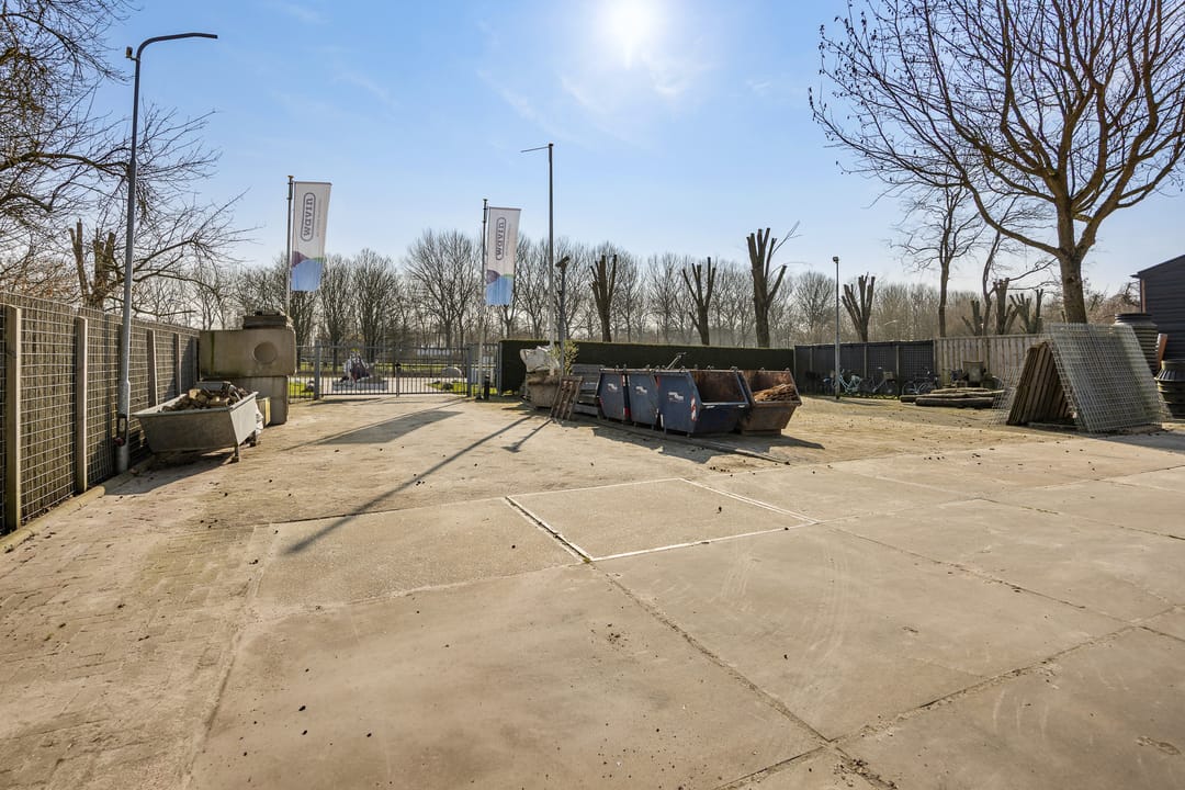 - achter het bedrijfsgebouw bevindt zich een bestraat terrein welke met een hek afsluitbaar is van de openbare weg