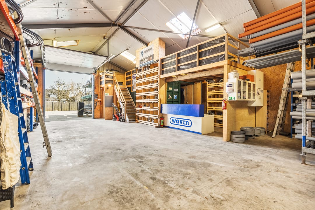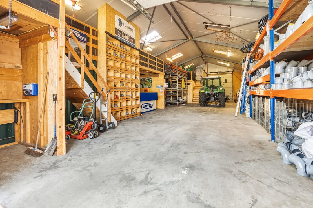 Deze moderne bedrijfsloods is, evenals het woonhuis, in 1992 gebouwd en is goed geïsoleerd. Het beschikt over een staalconstructie met zadeldak.