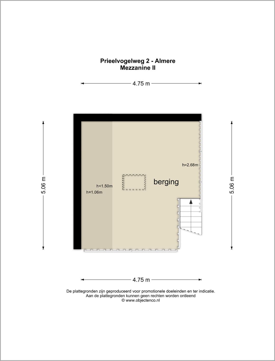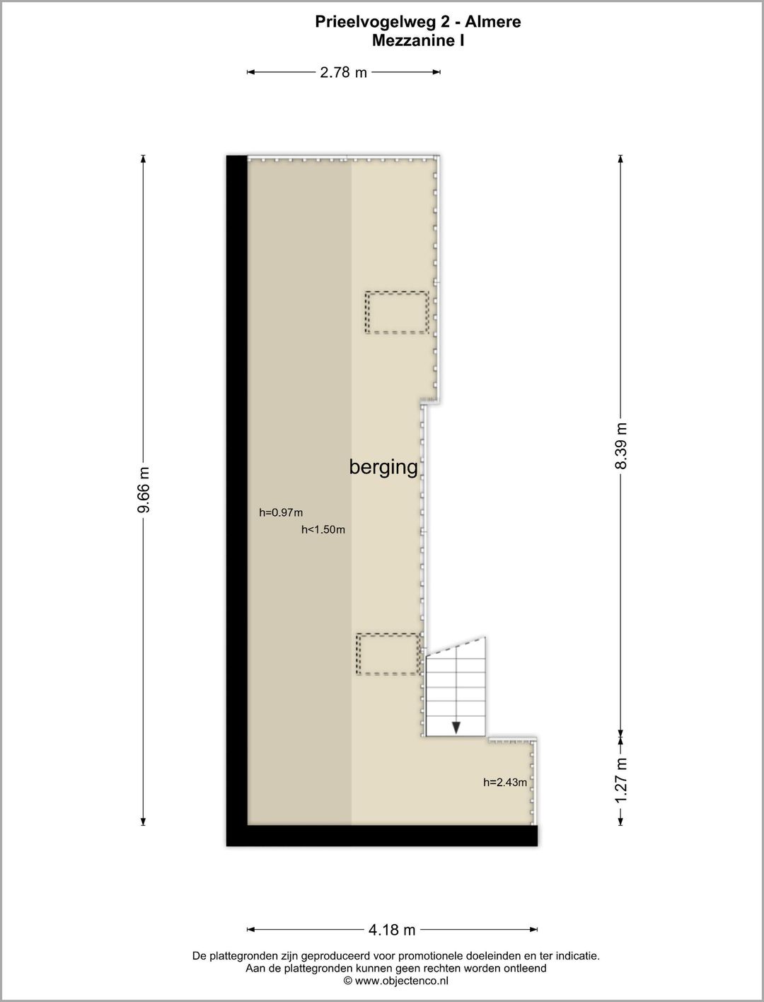 tussenvloer: 2 open bergingen (met trap bereikbaar) van respectievelijk 13 en 16 m² vvo.