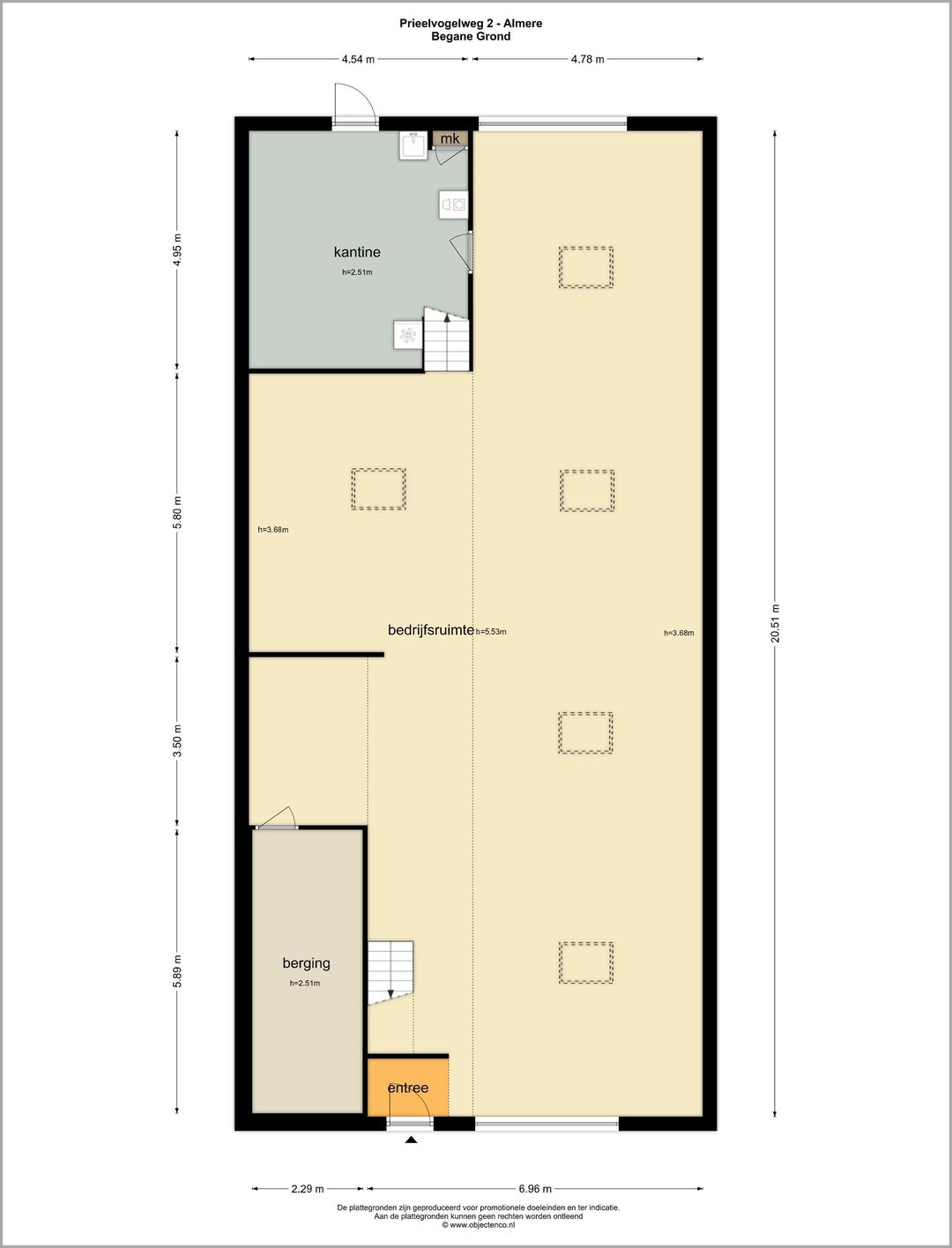 begane grond: bedrijfsruimte 189 m² vvo inclusief bijkeuken/entree ruimte en berging.