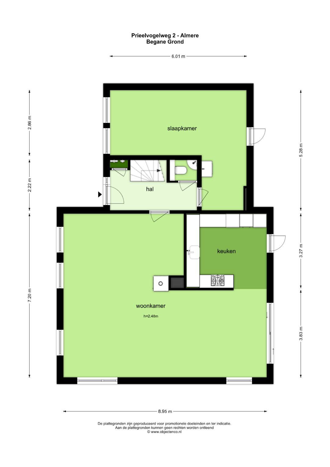 Begane grond: Woonkamer, keuken (2016), werkkamer tevens als slaapkamer te gebruiken.