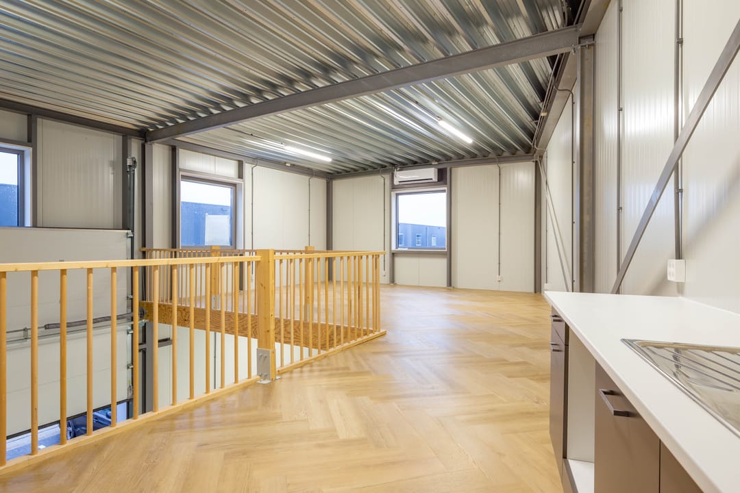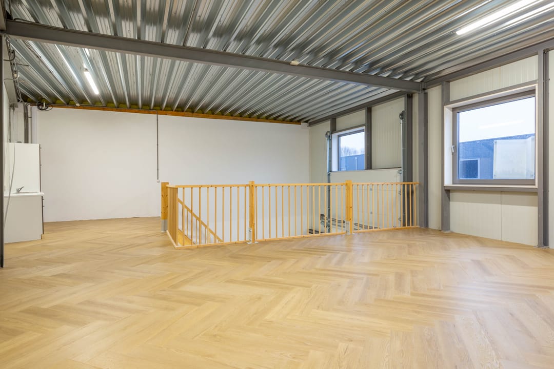 Kantoorruimte boven: 50m2 met een stijlvolle visgraat pvc-vloer (Quickstep) en veel natuurlijk daglicht.