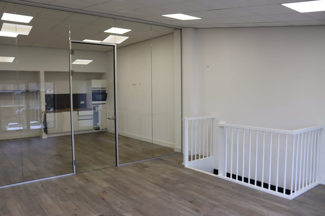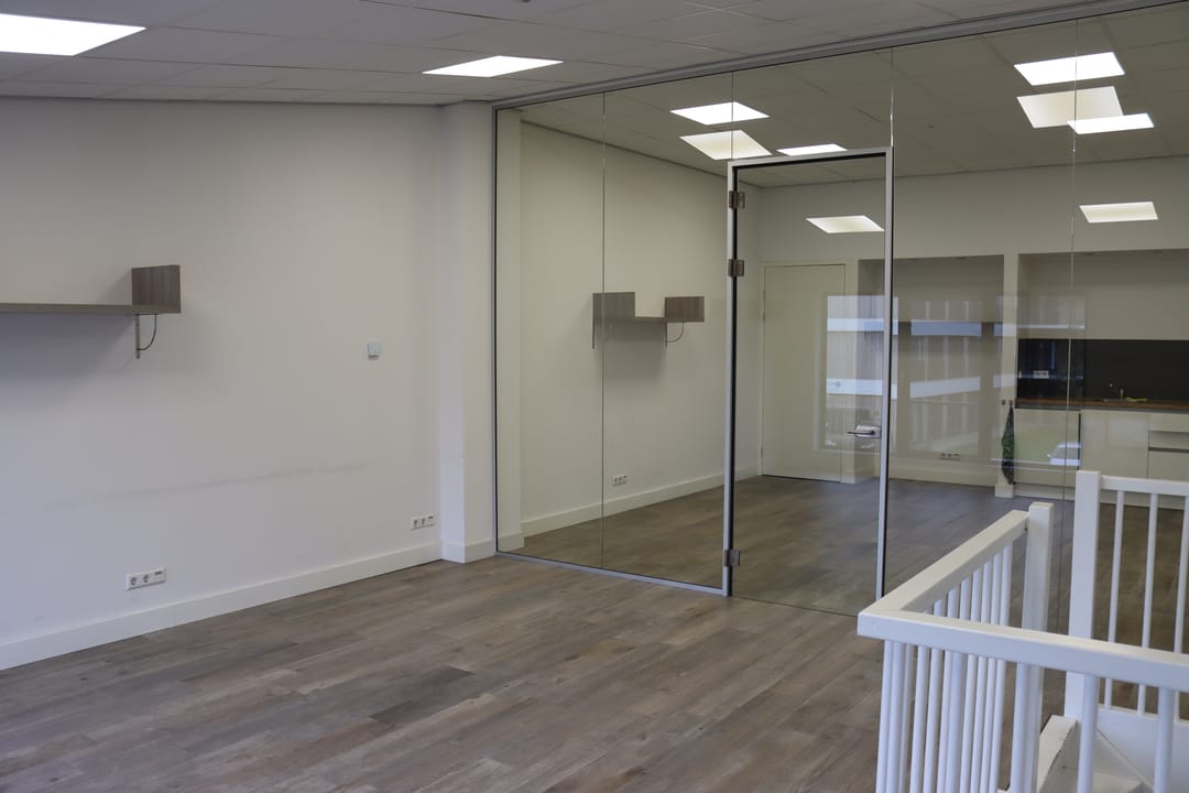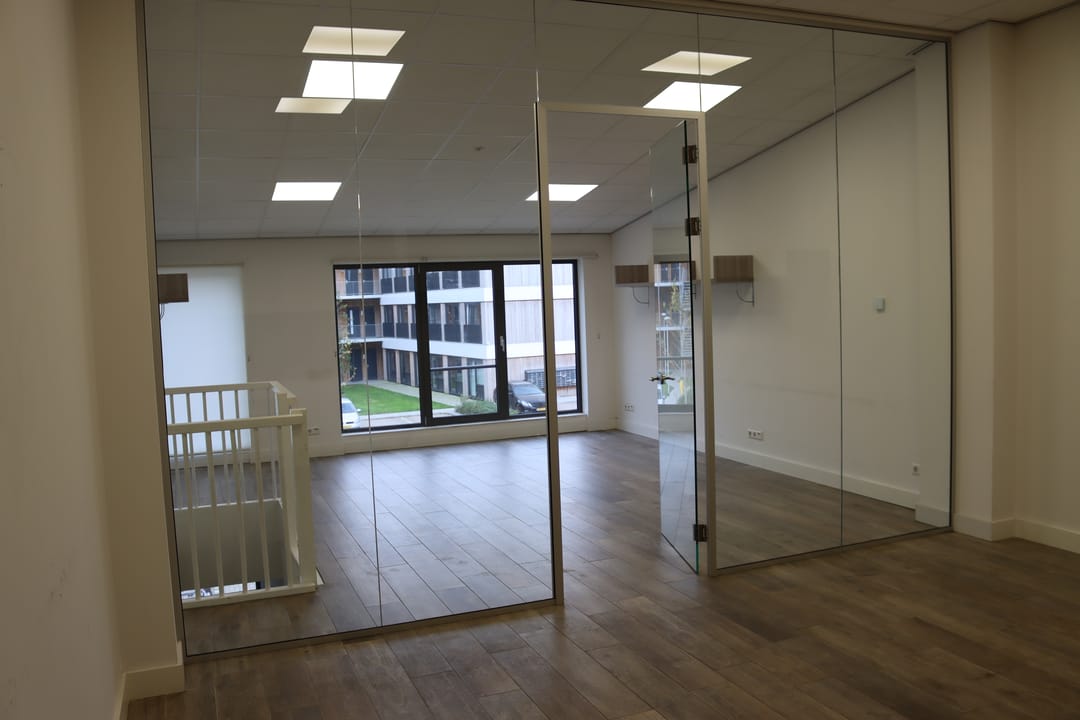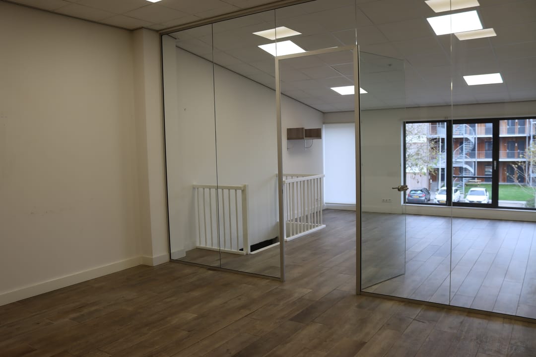 Indeling: De unit is circa 120 m² (BVO) verdeeld over 60m2 (BVO) begane grond. Daar is ook een toilet aanwezig. Krachtstroom is aanwezig. De kantoor verdieping (60m2 BVO) is luxe afgewerkt, voorzien van een glazen tussenwand. Voorzetwanden met (geluid)isolatie en systeemplafond. Ook is een pantry met inbouwapparatuur. Verwarming middels CV/Vloerverwarming.